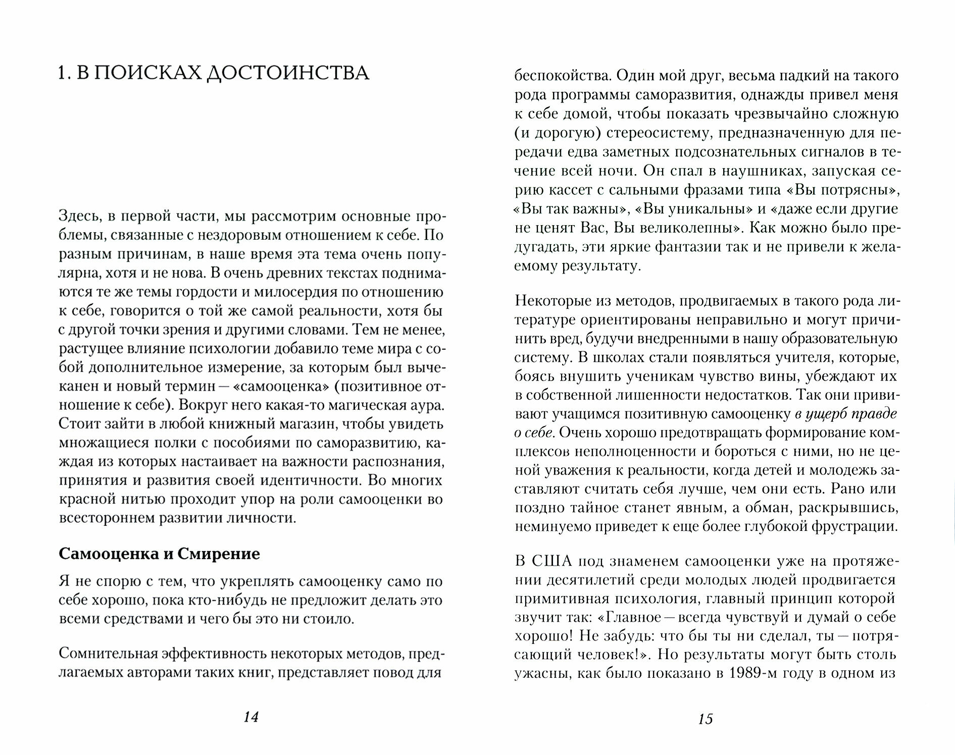 Как нам обрести этот мир? Любит ли нас Бог, если мы погрязли в презрении к себе? Как я могу дарить радость, если у меня ее нет? О. Мишель помогает решить эти головоломки, показывая путь самоуважения в бескорыстности. Он объясняет, как именно можно развить в себе "смиренную самооценку" - такое чувство достоинства, которое не противоречит реальному состоянию человека, не льстит. Взяв и объединив лучшее из наследия классической духовной мудрости с научными данными психологии, он учит сочетать достойную и лишенную эгоизма самооценку, упорядоченное внимание к себе и открытость в любви к другим.