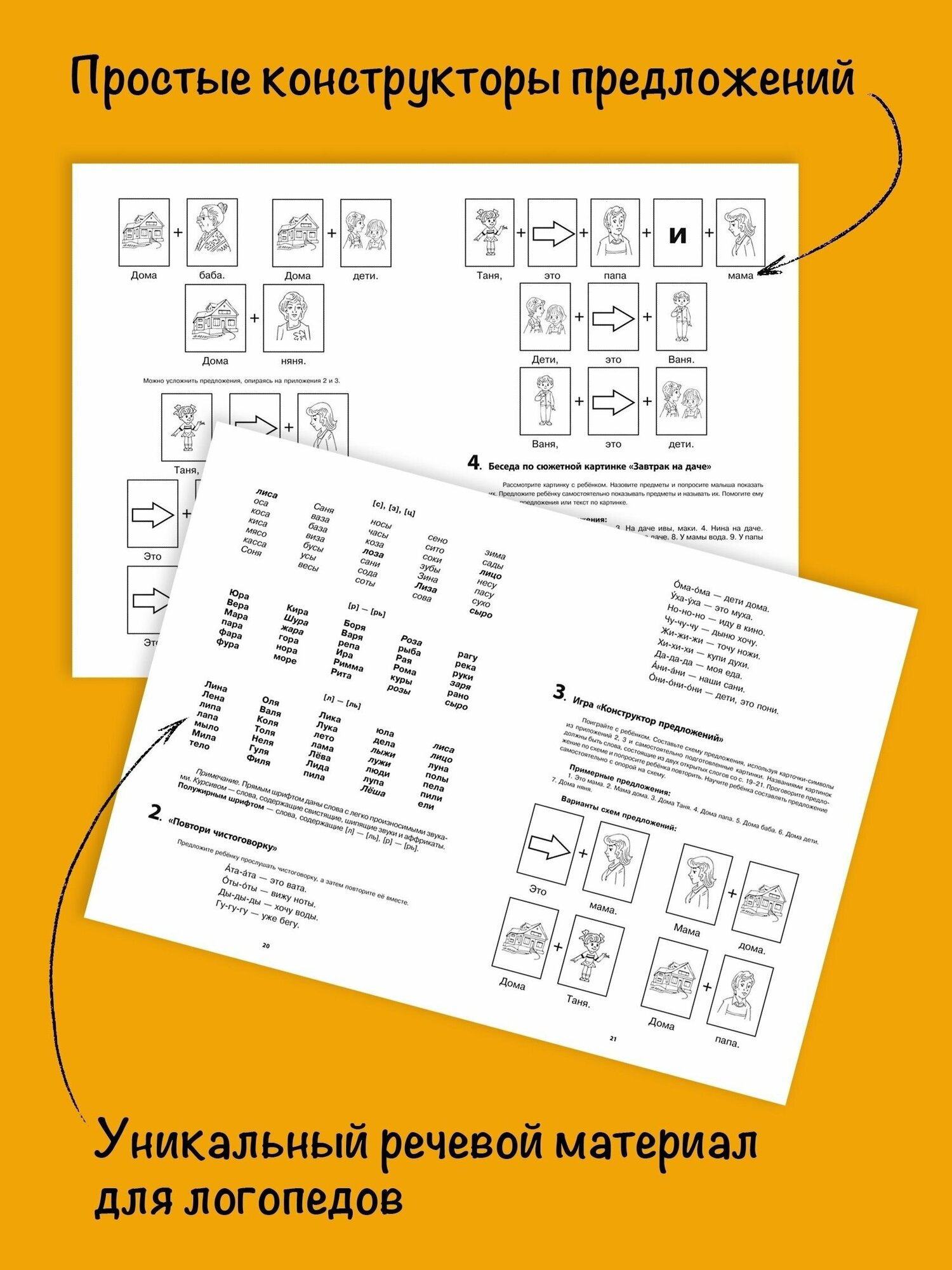 В издании представлена система работы по формированию речи у неговорящих детей дошкольного возраста. Главная цель пособия — способствовать возникновению диалога взрослого с ребёнком. Материал для тренинга составляют увлекательные игры, в том числе и пальчиковые, забавные картинки и полезные заготовки для карточек, интересные тексты, озорные стихи и весёлые чистоговорки. Базовую часть тренинга составляют подборки слов, сгруппированные по степени сложности слоговой структуры для каждого этапа работы. В книге дана необходимая информация о нормальном ходе развития речи ребёнка и кратко охарактеризованы нарушения речи. Практический материал адресован логопедам и заботливым родителям.