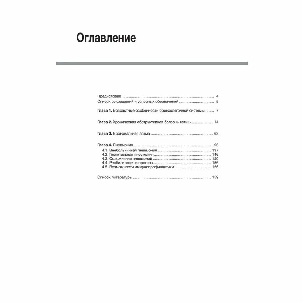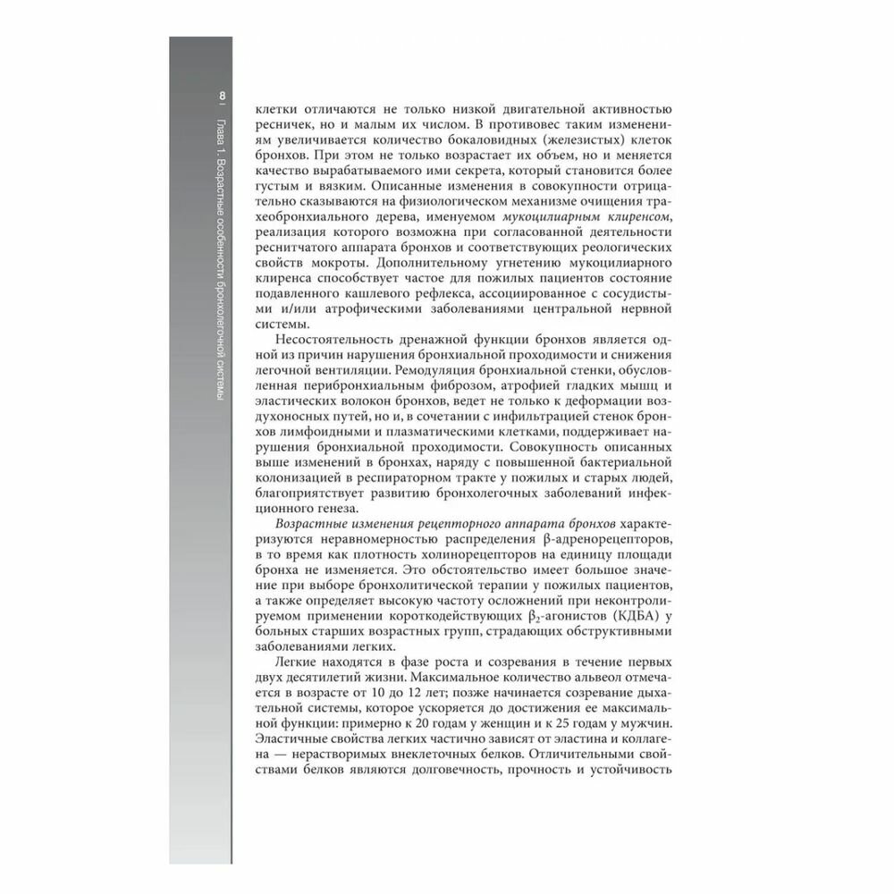 В руководстве рассмотрены особенности физиологического старения и функционирования бронхолегочной системы. Основной акцент сделан на наиболее часто встречающихся патологиях старческого возраста, таких как хроническая обструктивная болезнь легких, бронхиальная астма и некоторые виды пневмоний. Детализированы гериатрические аспекты клинической картины, диагностики и лечения данных патологий.