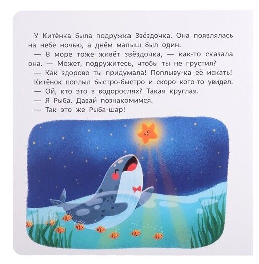 "Китенок ищет друга" - увлекательная книжка с окошками, благодаря которой ребёнок расширяет кругозор, тренирует мышление, развивает моторику. Вместе с главным героем малыш путешествует по океану, открывает окошки и узнает разные простые формы
