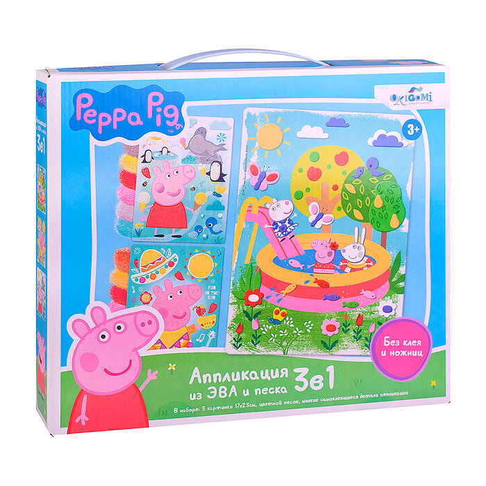 Свинка Пеппа. Набор аппликаций 3 в 1 из ЭВА и песка ОРИГАМИ