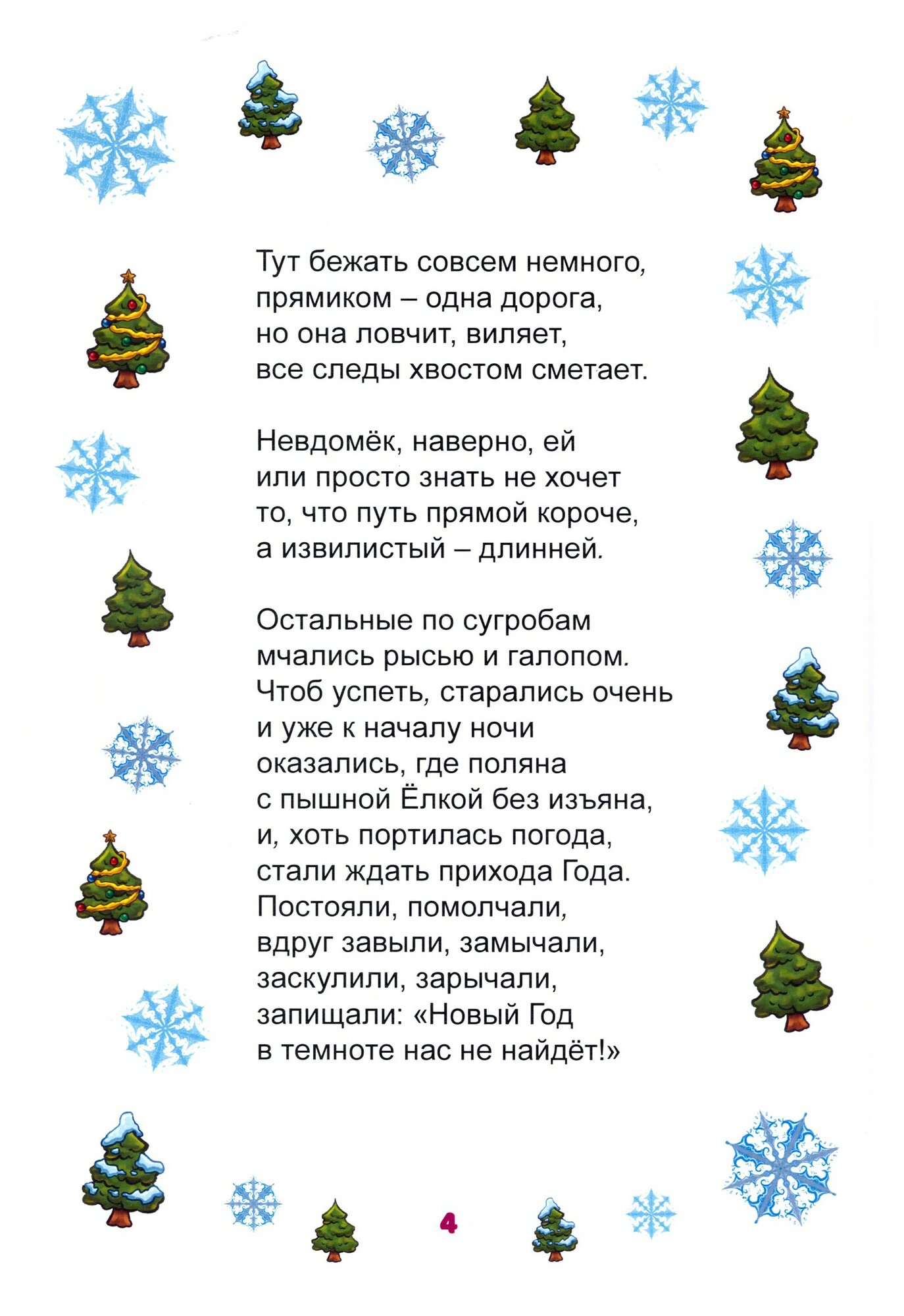 А вот как его отметят братья наши меньшие, звери и птицы, как произойдёт их встреча с Дедом Морозом и Снегурочкой, а также с Бабой-Ягой и залётным попугаем Гошей, - предстоит узнать юному читателю.