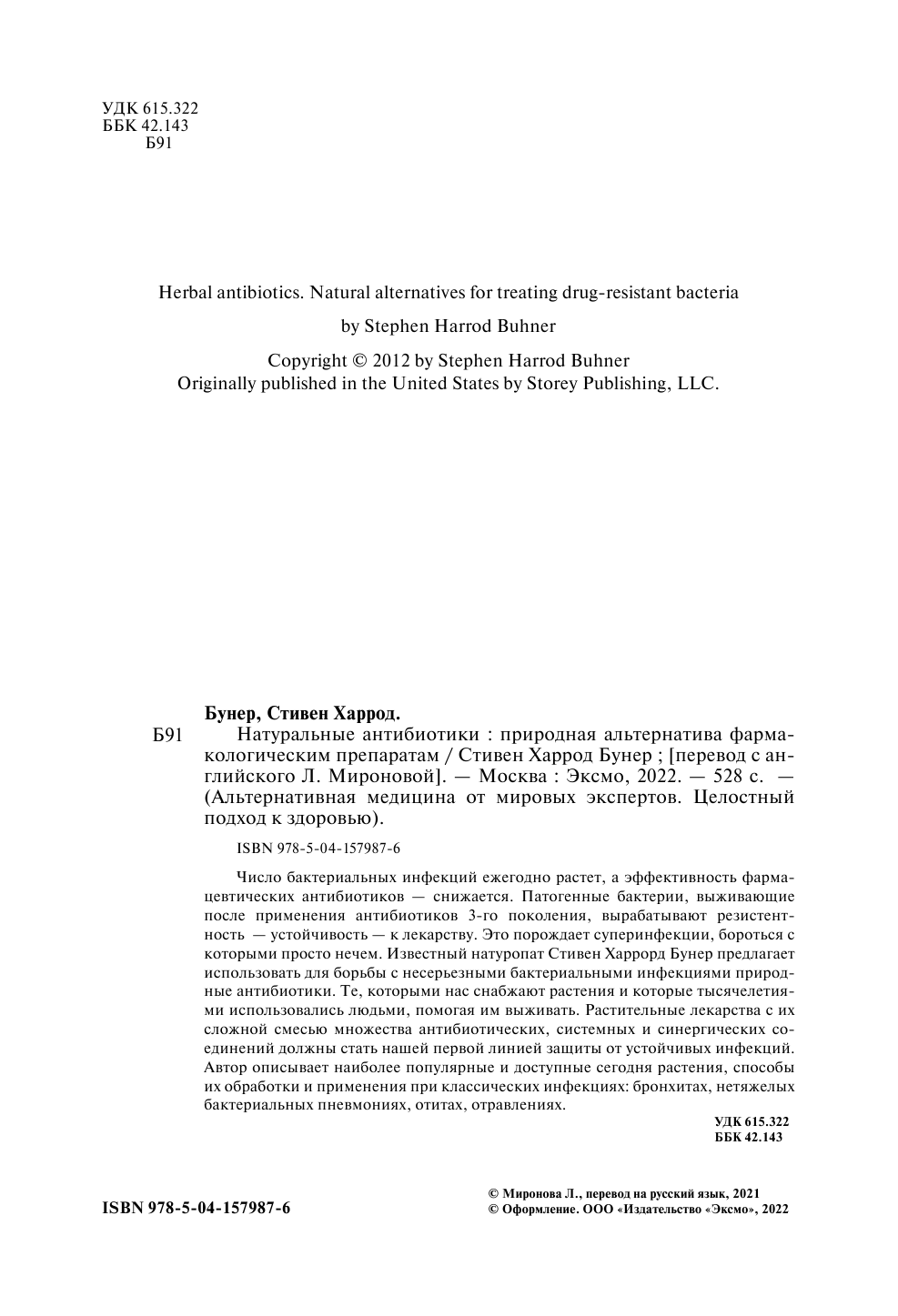 Натуральные антибиотики. Природная альтернатива фармакологическим препаратам (Бунер Стивен Харрод); ООО "Издательство "Эксмо", 2022