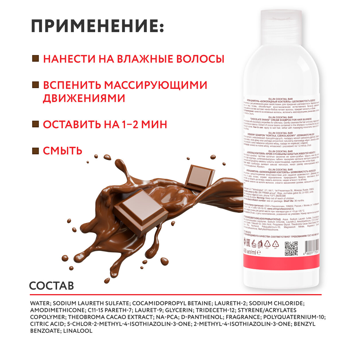 Ollin Professional Крем-шампунь "Шоколадный коктейль" для придания шелковистости 400 мл (Ollin Professional ) (ЭХ99989423663)