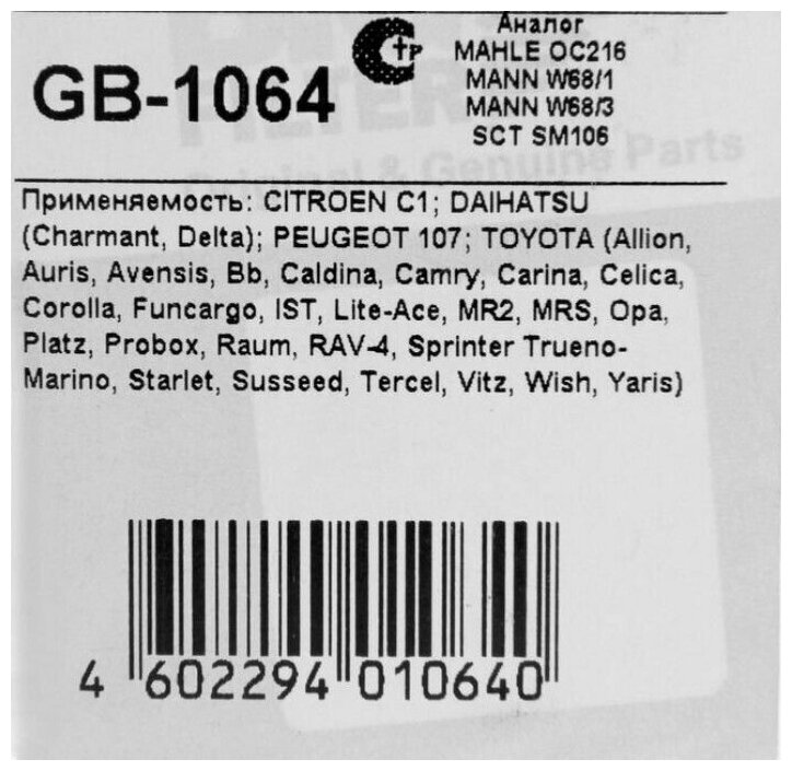 - Масляный фильтр BIG GB-1064 ANTON_MYGT