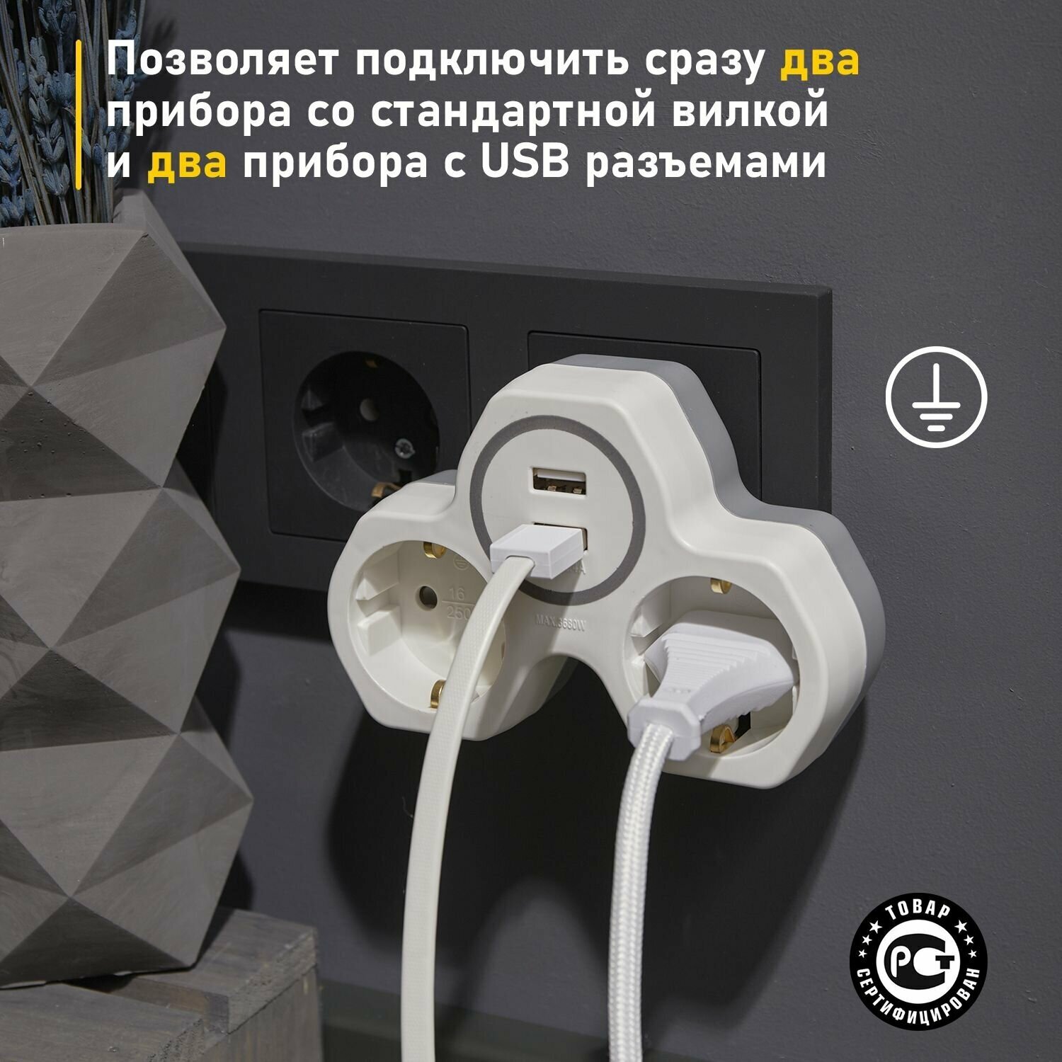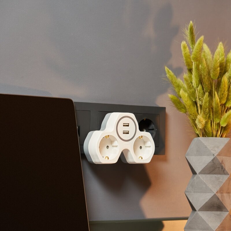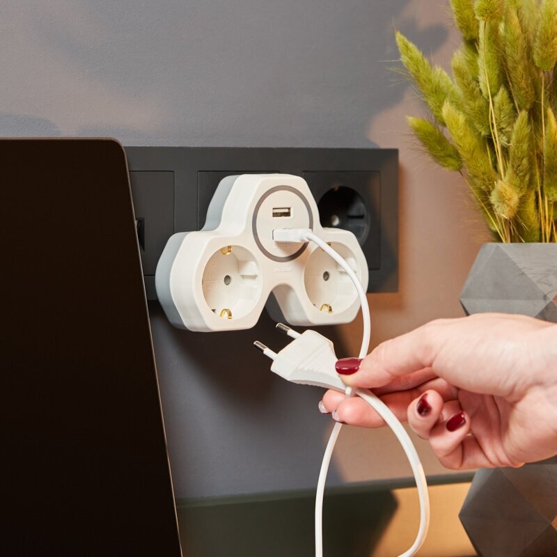 Электрический двойник REXANT предназначен для одновременного подключения к электрическим сетям с напряжением 220 В сразу два прибора со стандартной вилкой и два прибора с USB разъемами питания с максимальной мощностью 2А. Розетки обеспечивают плотное обжатие присоединяемых вилок за счет упругих пластин контактной группы адаптера. Высококачественный пластиковый корпус обеспечивает надежную изоляцию от токопроводящих частей. Двойник можно использовать в помещениях, где могут находиться маленькие дети, так как шторки надежно блокируют доступ к контактам розетки других мелких предметов: спиц, карандашей, бусин и др.