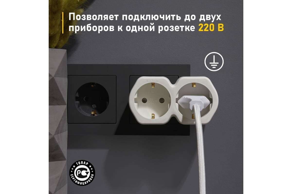 Электрический двойник REXANT предназначен для одновременного подключения к электрическим сетям с напряжением 220 В сразу два прибора. Розетки обеспечивают плотное обжатие присоединяемых вилок за счет упругих пластин контактной группы адаптера. Высококачественный пластиковый корпус обеспечивает надежную изоляцию от токопроводящих частей. Двойник можно использовать в помещениях, где могут находиться маленькие дети, так как шторки надежно блокируют доступ к контактам розетки других мелких предметов: спиц, карандашей, бусин и др.