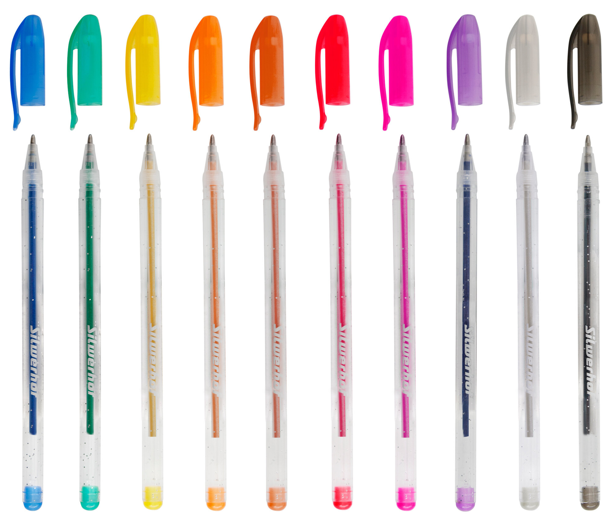 Набор ручек гелев. Silwerhof Веселые друзья Блестки d=1.0мм блистер (10шт) 10цв. 12 шт./кор.