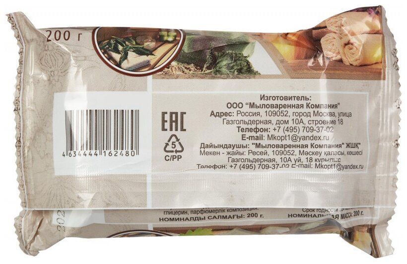 Мыло туалетное Мыловаренная Компания Банное в обертке 200 г. Традиционное мыло, без красителей и консервантов. Для гигиенических целей Способ применения: намылить влажную кожу, смыть водой. Меры предосторожности: при попадании на слизистые обильно промыть водой. Состав: натриевые соли жирных кислот, натуральных жиров и масел, вода, глицерин, парфюмерная композиция. Условия хранения: хранить в сухом, проветриваемом помещении, не оставлять во влажной среде. Срок годности: 24 мес. Относится к сегменту 'суперэконом' - товар с минимальными требованиями к качеству для тех, кто хочет сэкономить. Товар отвечает основным потребительским характеристикам.