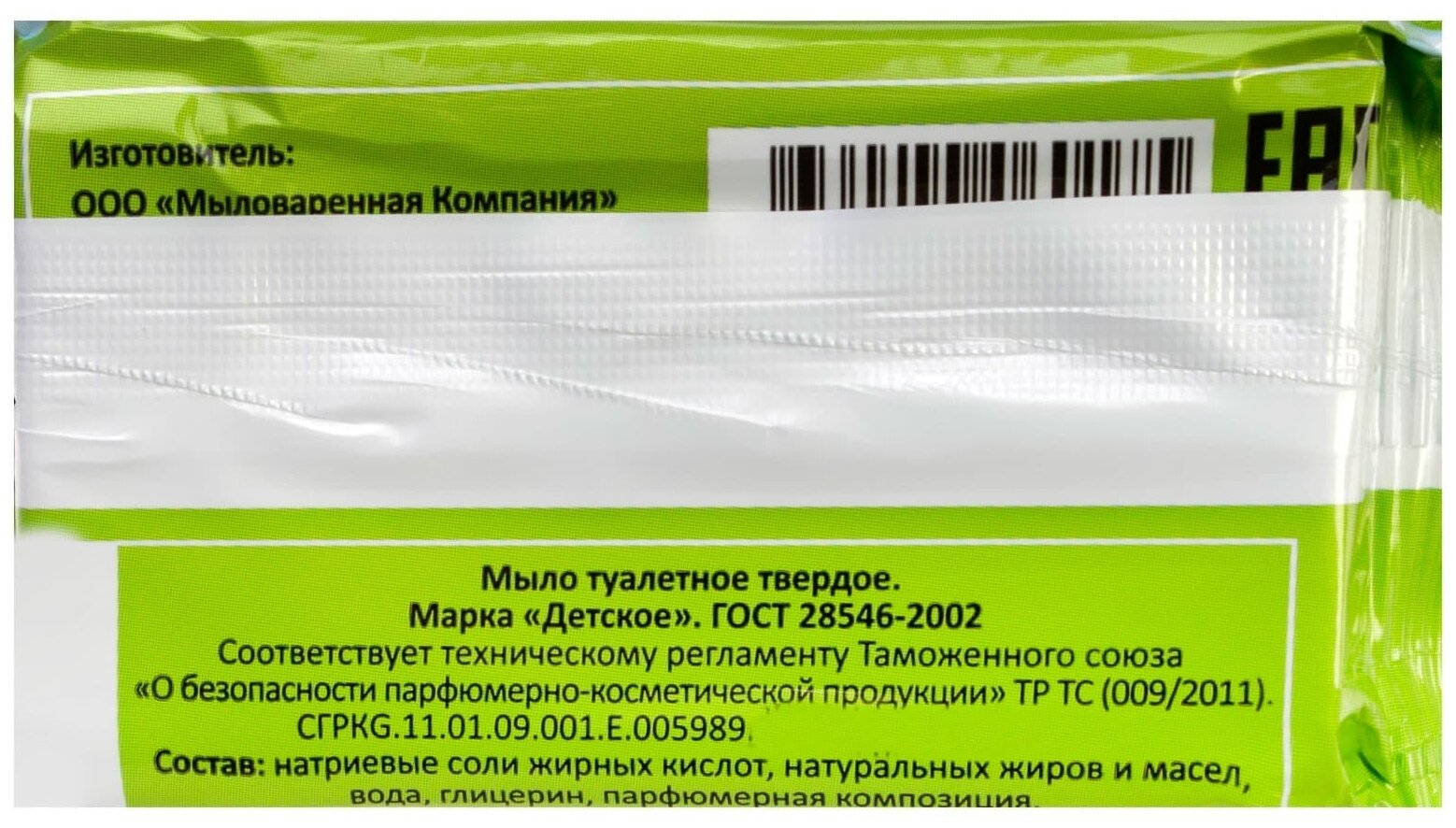 | Состав | натриевые соли жирных кислотнатуральных жиров и масел, вода, глицерин, хлорид натрия, двуокисьтитана пигментная, парфюмерная композиция |