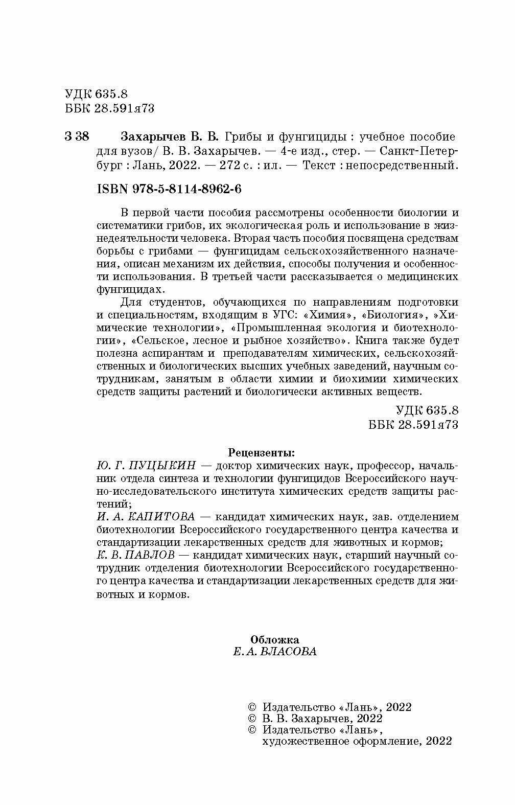 Грибы и фунгициды. Учебное пособие для вузов (Захарычев Владимир Владимирович); Лань, 2022