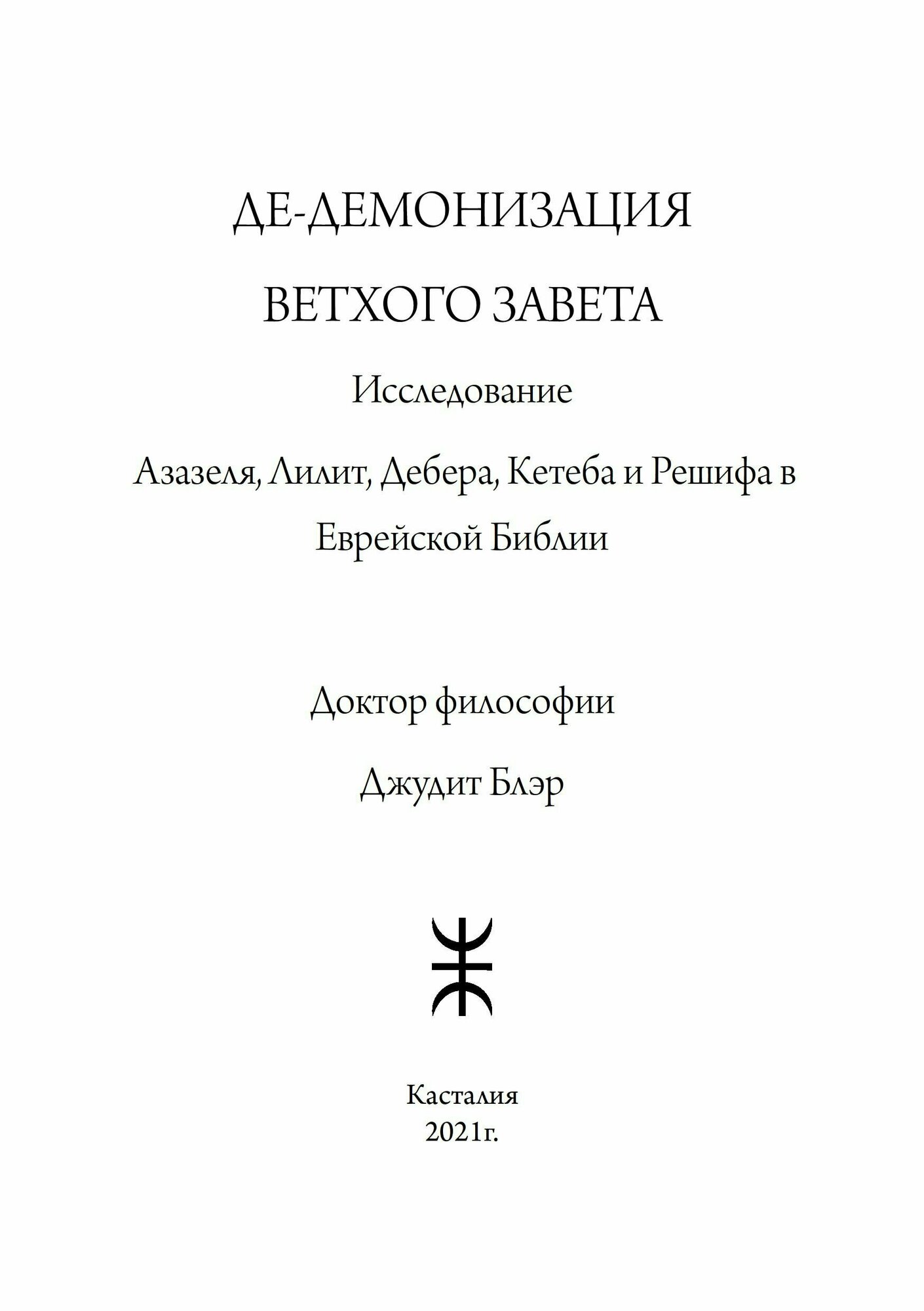 Де-демонизация ветхого завета (Джудит Блэр); Касталия, 2021