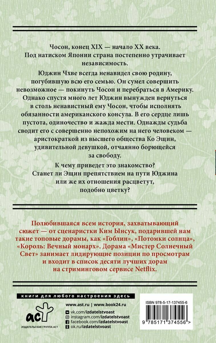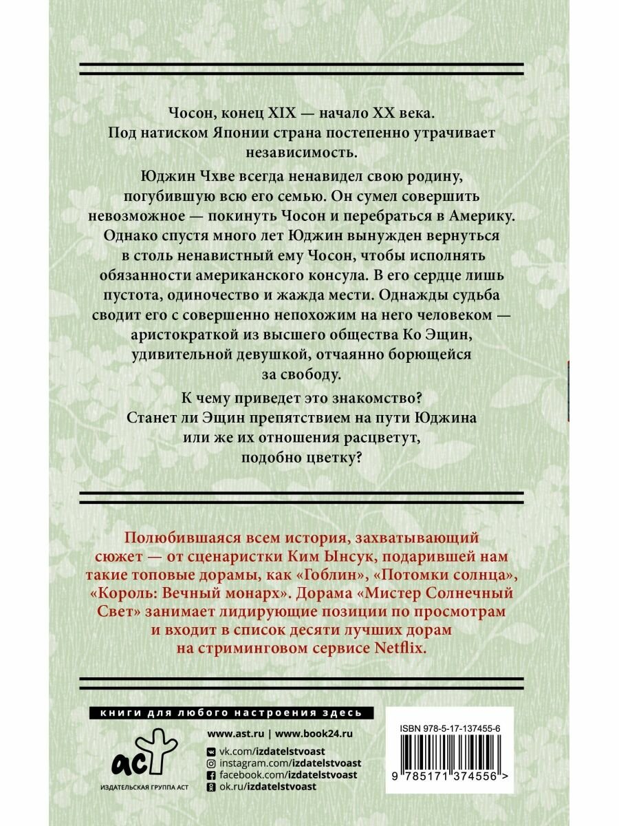 На сегодняшний день товар «Книга: Мистер Солнечный Свет. Первая часть (Ким Ынсук); Издательство АСТ, 2018» можно купить с кешбеком в 5 магазинах: book24, ЛитРес, Буквоед, Читай-город, Яндекс.Маркет