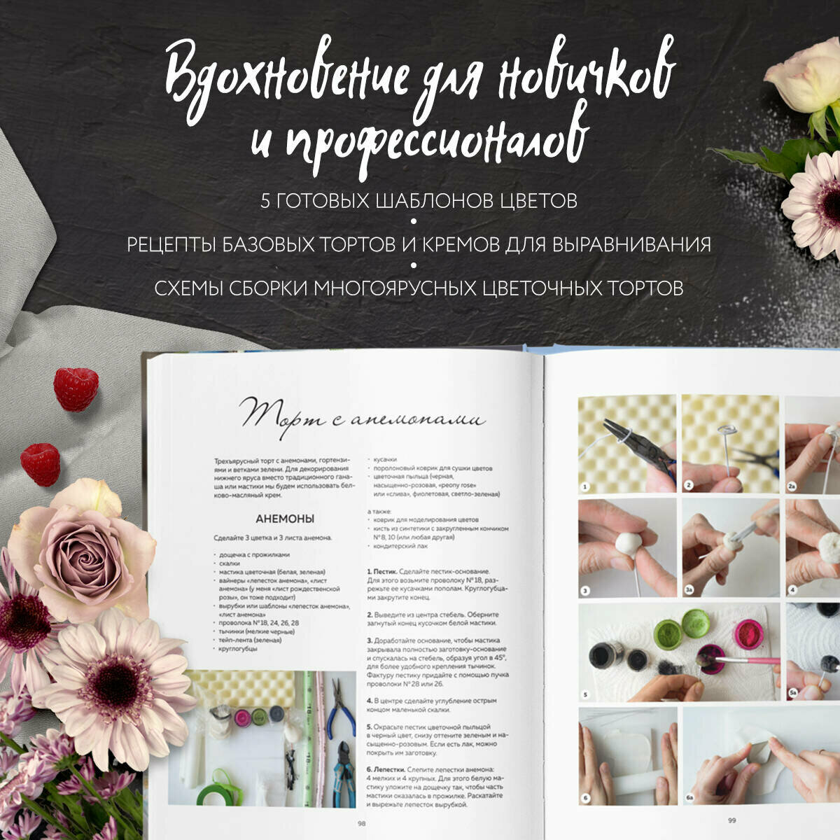 В книге вы найдете пошаговые инструкции для создания сахарных цветов, рецепты тортов, способы сборки сложных конструкций тортов, а также контурные схемы цветов для того, чтобы вы смогли сочинить свой собственный цветочный шедевр.