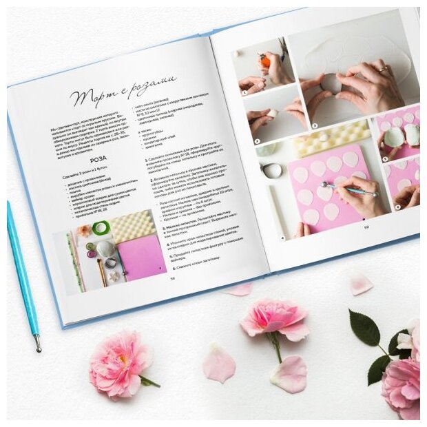 В этой книге упор идет на создание сахарной флористики, а так же есть и рецепты тортов и кремов, что тоже важно. Для декора есть трафареты, это значительно упрощает работу.