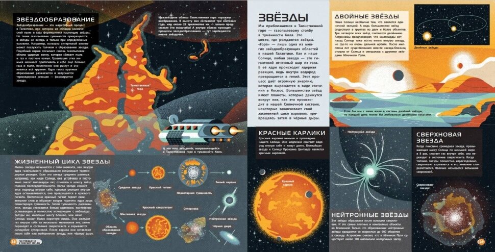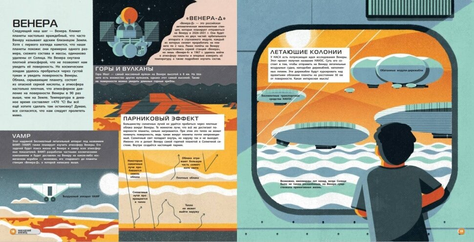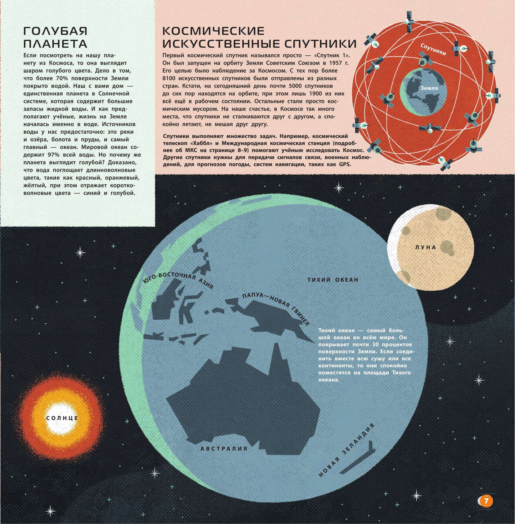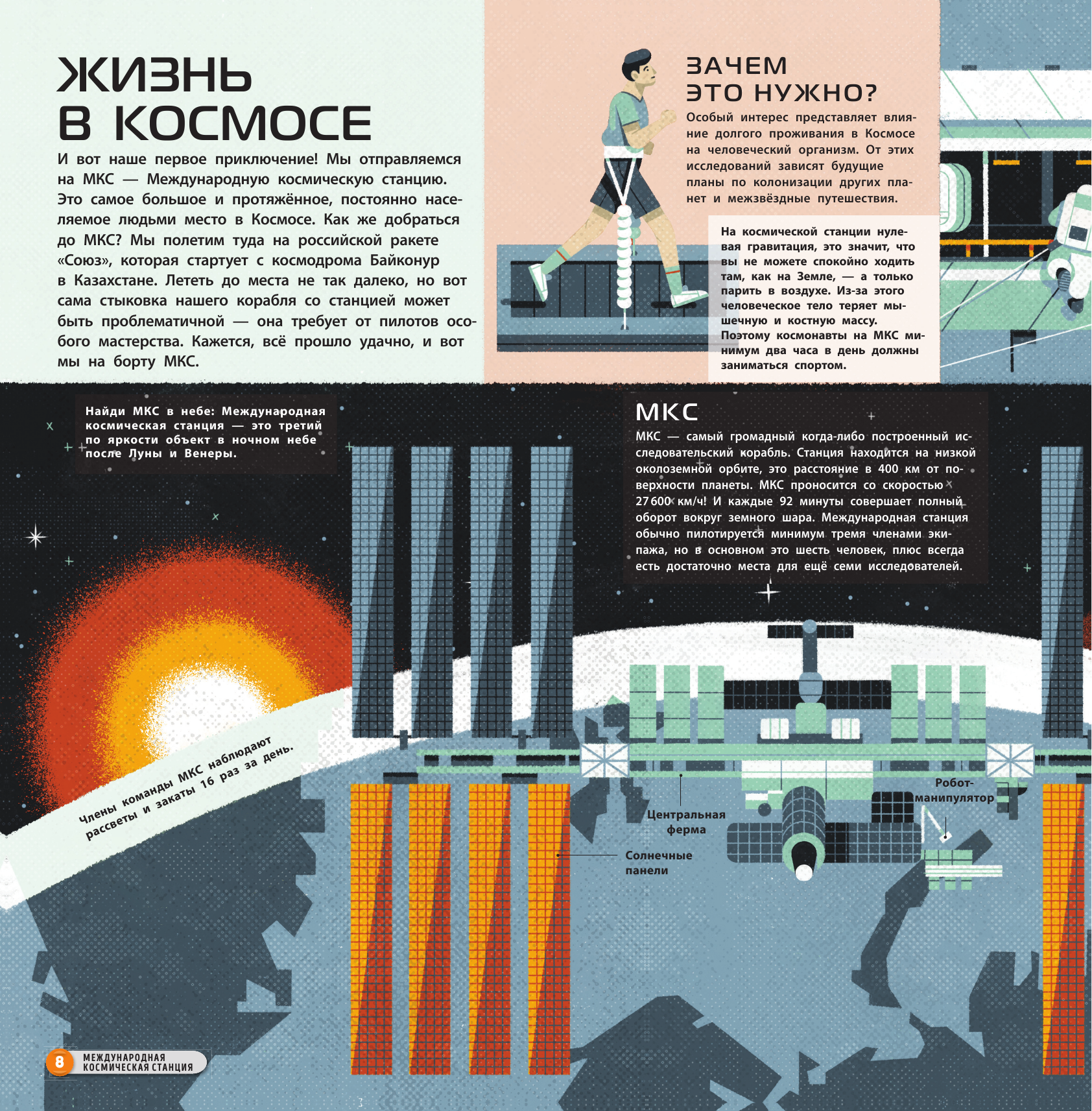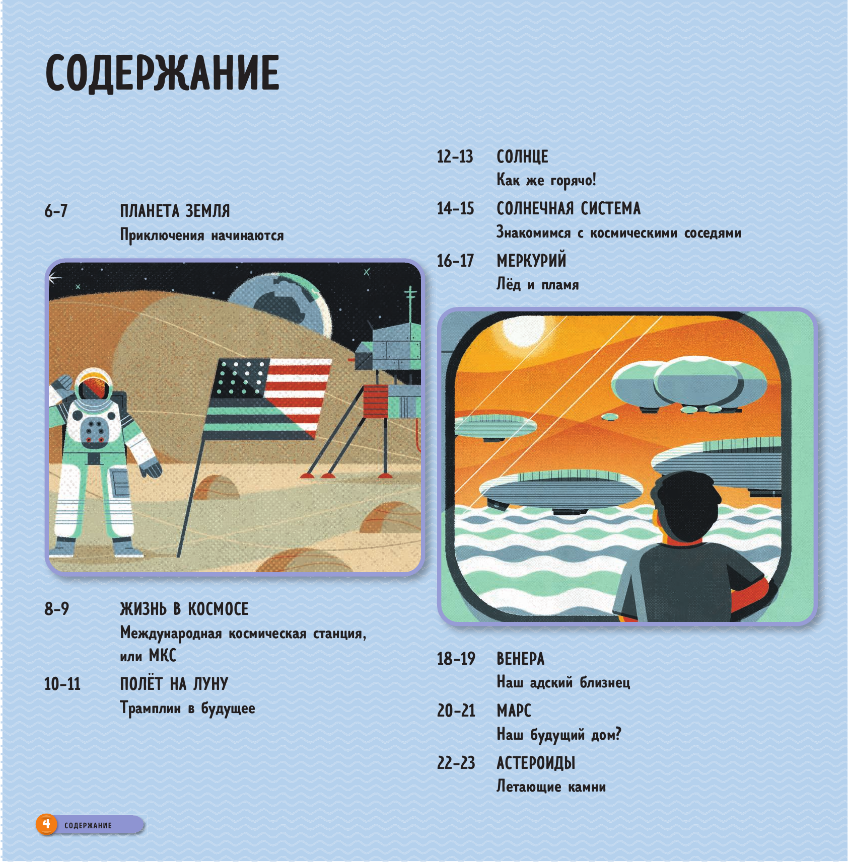 На каждом развороте — рассказ о планетах, звездах, кометах и астероидах, а кроме того нужные и любопытные факты о летательных аппаратах, чьими глазами мы смотрим на космос: прочти, послушай, посмотри!