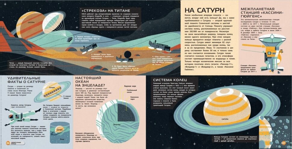 Очень много интересных знаний про космос, даже я, казалась бы взрослый человек, но любящая космос, нашла много чего интересного для себя, про ребенка вообще молчу, подсел на книгу основательно. Информация изложена умеючи, много интересных, красочных картинок, а главное, что все чистая правда, никаких выдумок. Рекомендую всем деткам и даже взрослым.