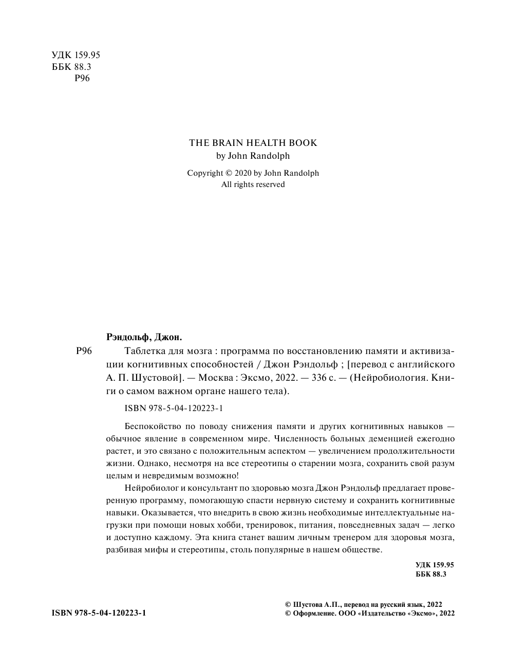 Таблетка для мозга. Программа по восстановлению памяти и активизации когнитивных способностей (Рэндольф Джон); ООО "Издательство "Эксмо", 2022