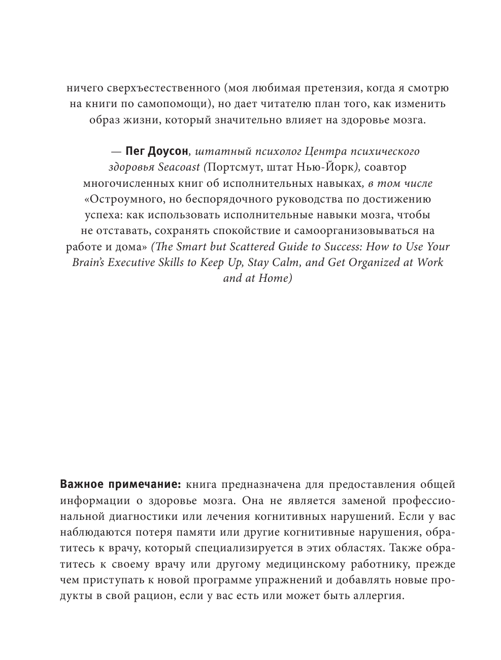 Джон Рэндольф, клинический нейропсихолог и консультант по здоровью мозга, разбивает главный миф, гласящий, будто нервные клетки не восстанавливаются! Он объединил понятные правила, действенные упражнения, интересные хобби и необходимые привычки, совершенствующие образ жизни, которые помогут остановить снижение памяти и вернут когнитивное здоровье. В своей работе Джон Рэндольф отвечает на главный вопрос: какие стратегии для улучшения памяти действительно работают? Его методы представлены увлекательным и доступным способом. Наряду с уроками нейробиологии, клинической и социальной психологии, в книге предлагаются мощные тренировки для вашей памяти и самообучения, которые поспособствуют здоровью мозга, вне зависимости от вашего возраста и возможностей.
