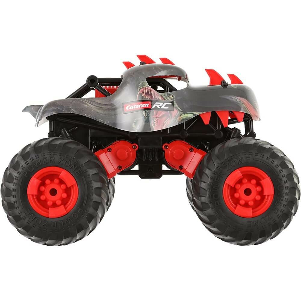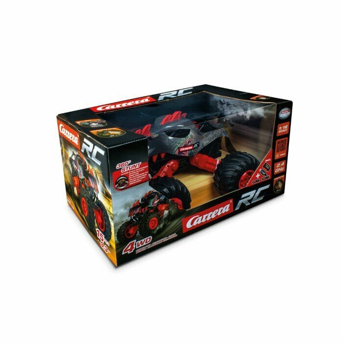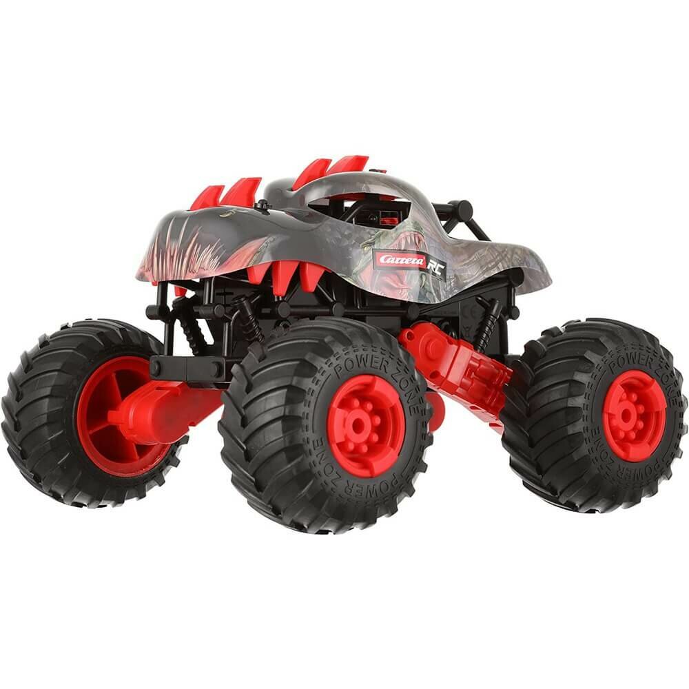 Внедорожник Dino Car на радиоуправлении от Carrera впечатляет своим внешним видом: он обладает чертами настоящего панк - мобиля, стилизованного по мотивам динозавра T-Rex, с мощными колесами и полным приводом. Оснащенный технологией 2.4 ГГц и дифференциальным управлением, Dino Car может ехать со скоростью до 15 км/ч, будь то на асфальте, камне, гравии или на лугу. Никакое бездорожье не станет преградой на его пути, а благодаря функции поворота вокруг своей оси на 360° Dino Car может выполнять крутые трюки.