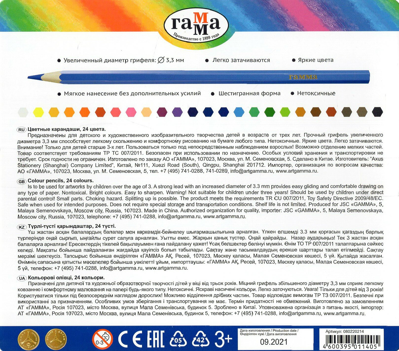 Карандаши Классические 24 цвета ГАММА