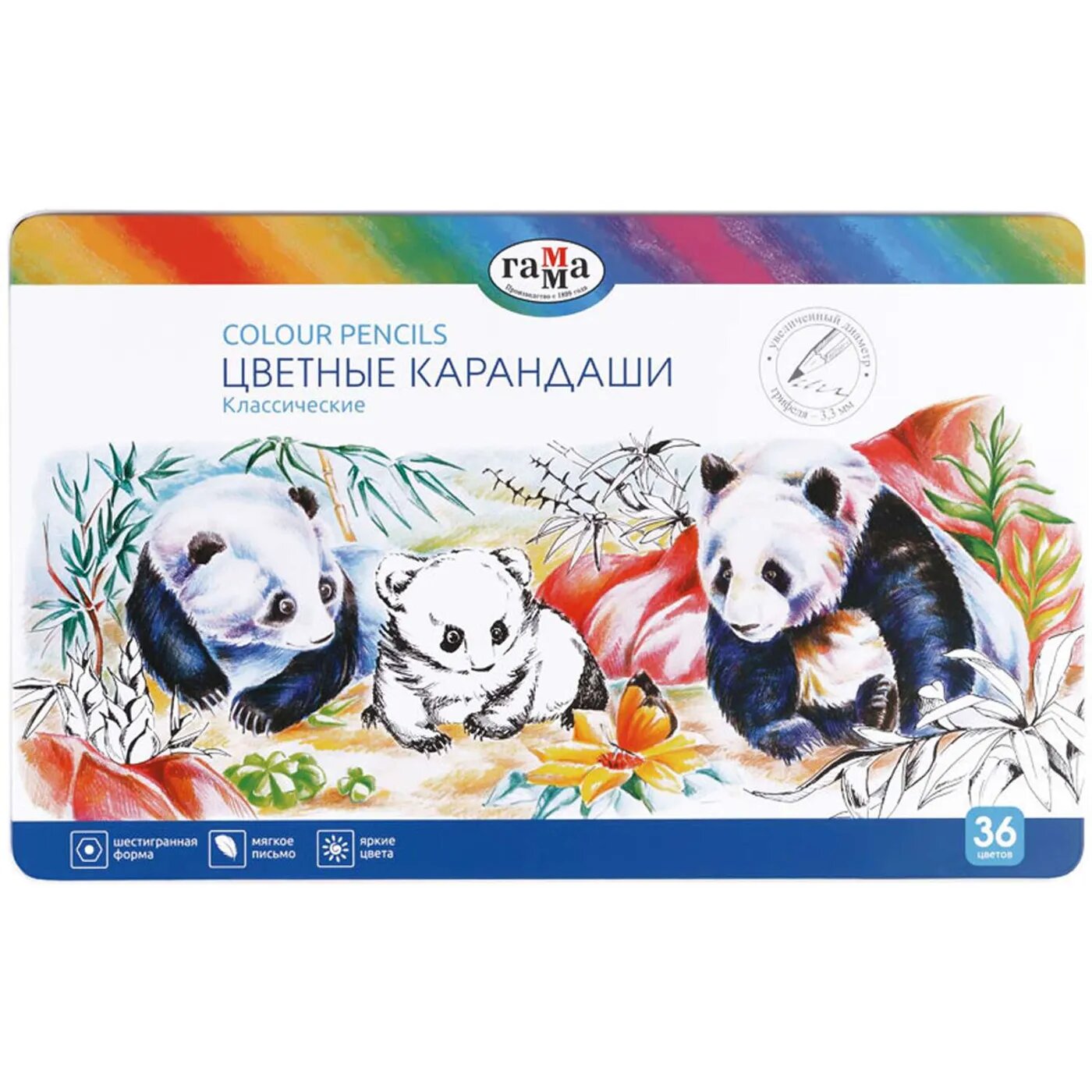 Цветные карандаши Гамма в стильном металлическом пенале отлично подходят в качестве подарка, а также их удобно брать с собой на занятия или на прогулку. Металлическая упаковка надежно сохранит карандаши от повреждений. Предназначены для детского и художественного изобразительного творчества детей в возрасте от трех лет. Прочный грифель способствует легкому скольжению и комфортному рисованию на бумаге любого типа. Нетоксичные. Яркие цвета.