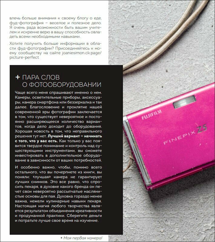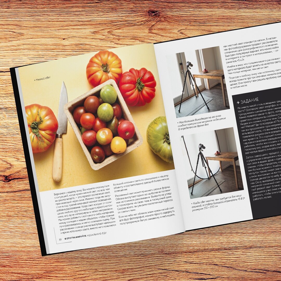 Очень удобное и понятное пособие для тех, кто хочет заняться фуд-фотографией и не только. Автор учит обращаться с камерой, раскрывает нюансы, учит приемам и рассказывает основы. Книга компактная, ничего лишнего, все дополнено наглядными примерами и «домашними» заданиями на повторение и развитие необходимых навыков. Удобно, что многие советы можно применять и в других областях, так что книга полезна, очень рада, что купила ее.