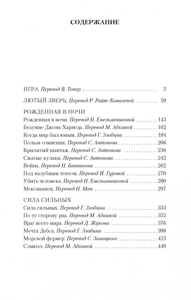 В сборник вошли работы, созданные Джеком Лондоном преимущественно в последнее десятилетие его жизни: это посвященные «боксерской» теме повести «Игра» и «Лютый Зверь», знаменитый «Мексиканец», цикл рассказов «Сила сильных» и ряд других произведений.