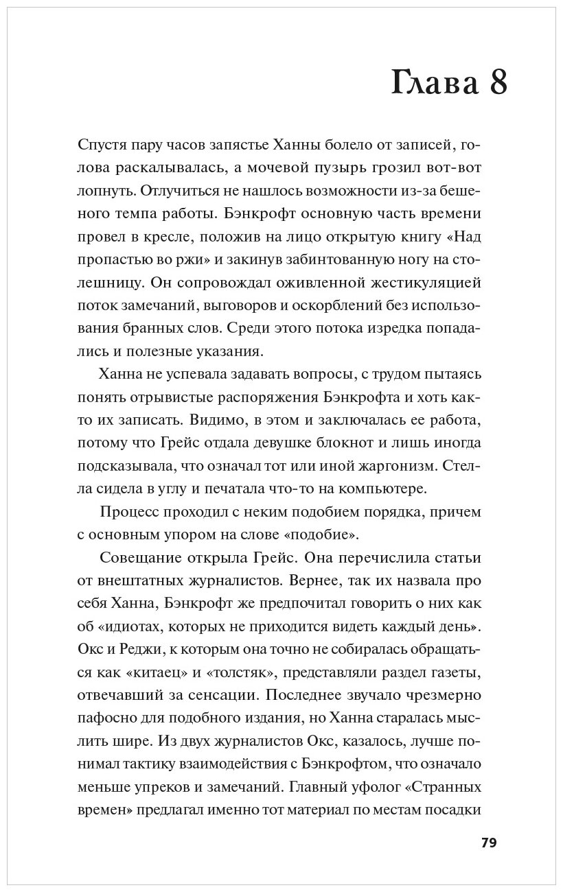 Домашнее задание съело собаку, в Перу вместо дождя с неба сыпятся лягушки, а в Венесуэле мумия напала на пешего туриста. Эта работа была для Ханны Уиллис шансом начать новую жизнь. Богом забытая газетенка, в которую ее взяли помощницей редактора Винсента Бэнкрофта, обещала необычные новости со всего света. Просматривая статьи о таинственных существах, теориях заговора и безумцах, творящих всевозможную ерунду (в основном голыми), Ханна почти слышит голос отца, вопрошающего, что за бред читает дочь.