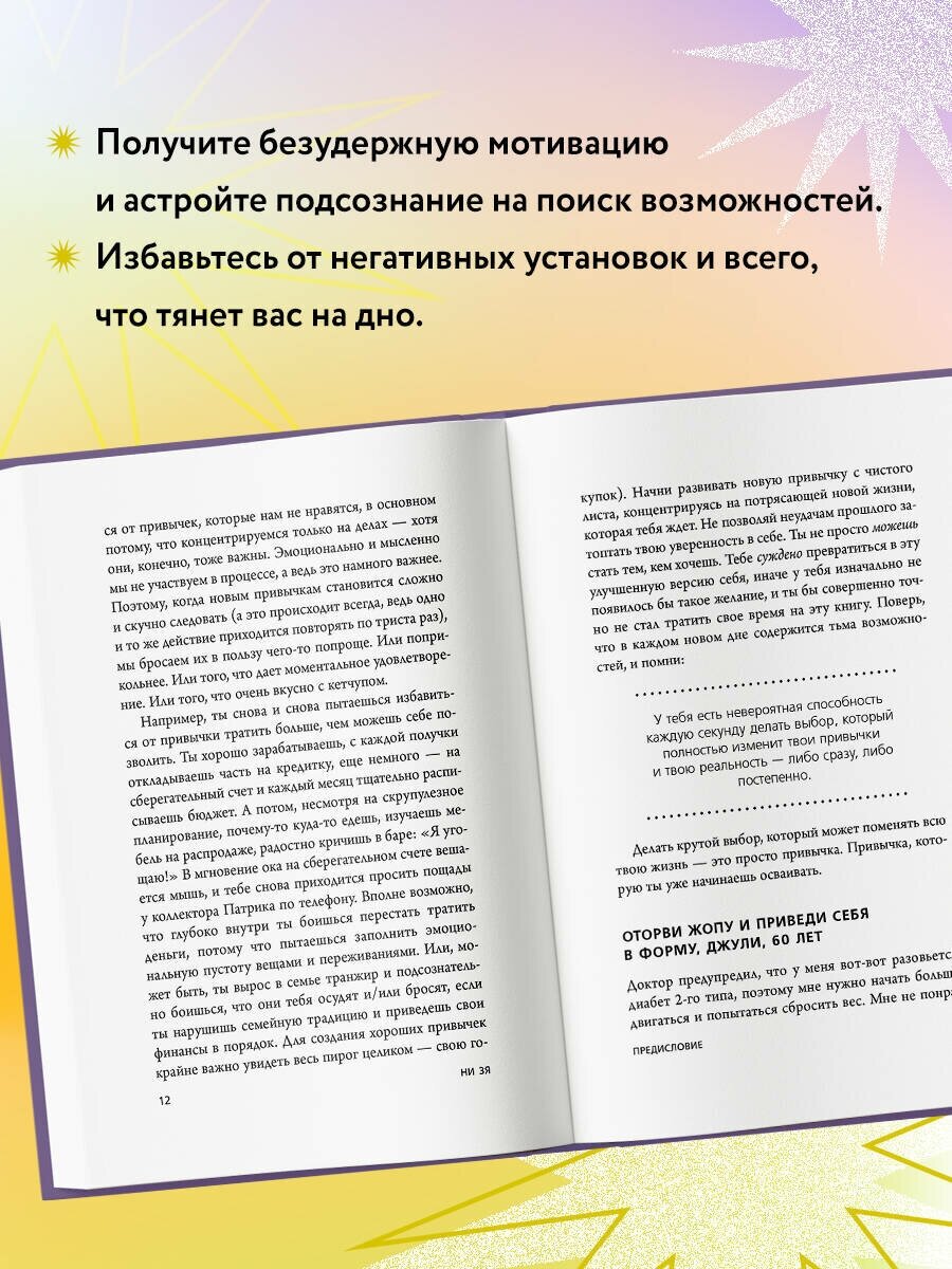 Нам отовсюду твердят одно и то же – "Хорошие привычки — хорошая жизнь!" и лозунги в подобном духе. О пользе привычек пишут книги, как и о том, как их начинать. Но никто не говорит о главном — пока внутри тебя нет гармонии, ты не сможет выработать хорошие привычки! И именно об этом пишет Джен Синсеро в своей книге "НИ ЗЯ". Она пишет о том, как добиться гармонии с собой и уже на подготовленной почве, если говорить образно, взрастить семена полезных, правильных, а главное осознанных привычек! Удивительно легко читается и усваивается, в новом формате ее удобно брать с собой в дорогу и читать, что является несомненным плюсом подобного издания. Рекомендую к покупке тем, кто никак не может начать придерживаться новых привычек.
