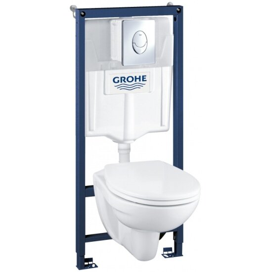 GROHE - система инсталляции 5 в 1. Данная модель включает в себя несущую раму, арматуру, бачок, унитаз и кнопку смыва. Все необходимые средства для монтажа, установки и настройки находятся в комплекте. Данный комплект имеет ряд фирменных технологий, которые обеспечивают дополнительный комфорт и увеличивают срок службы устройства. Безукоризненное износостойкое покрытие GROHE StarLight специально разработано таким образом, чтобы противостоять загрязнениям и истиранию.