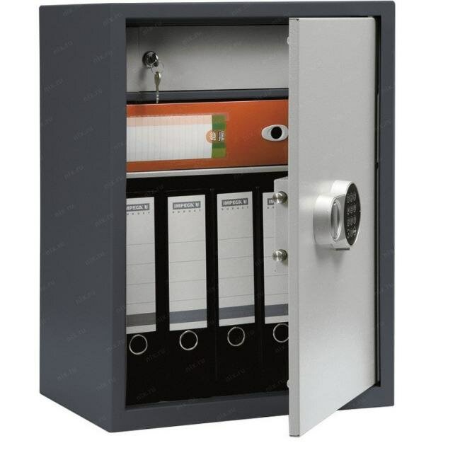 SL-65Т EL – офисный металлический шкаф, предназначенный для наиболее удобной организации хранения деловых документов, присутствующих в любом современном офисе. Шкаф характерен предельно демократичной ценой и высоким качеством исполнения, что делает его весьма привлекательным выбором на фоне прочей продукции данного типа.Качество шкафа гарантируется сертификатами соответствия ГОСТ 16371-93 и ТР ТС 025/2012 «О безопасности мебельной продукции». Шкаф SL-65Т EL – это прочное сварное изделие из стальных листов толщиной 1.2 мм. На дверь устанавливается электронный замок PLS-1 с возможностью аварийного открывания, для чего прилагается мастер-ключ. Для питания требуется четыре батарейки 1.5 В; имеется индикатор, уведомляющий о потере напряжения. В случае разрядки батарей код не меняется. Внутри модели SL-65Т EL расположено кассовое отделение со своим замком и полка, которую можно передвигать по высоте с шагом 90 мм, позволяя распределить объём шкафа самым рациональным образом. В шкафу можно разместить шесть папок-регистраторов (60 мм) формата А4 типа Корона, Bantex и так далее. Помимо функциональности, изделие обладает привлекательным внешним видом: светло-серое порошковое покрытие впишется в интерьер любого офиса, а также защитит поверхность от незначительных бытовых повреждений.Шкаф поставляется в собранном виде.