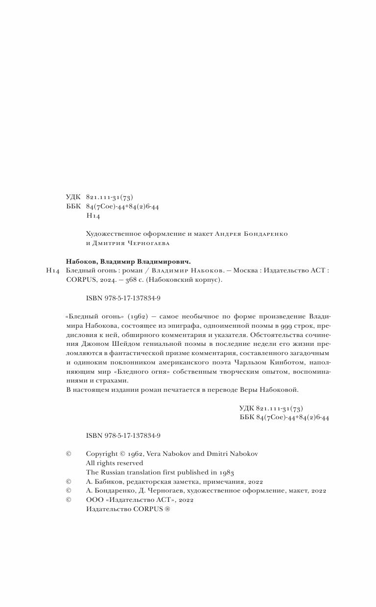 Книга: Бледный огонь (Набоков Владимир Владимирович); ИЗДАТЕЛЬСТВО "АСТ", 2022