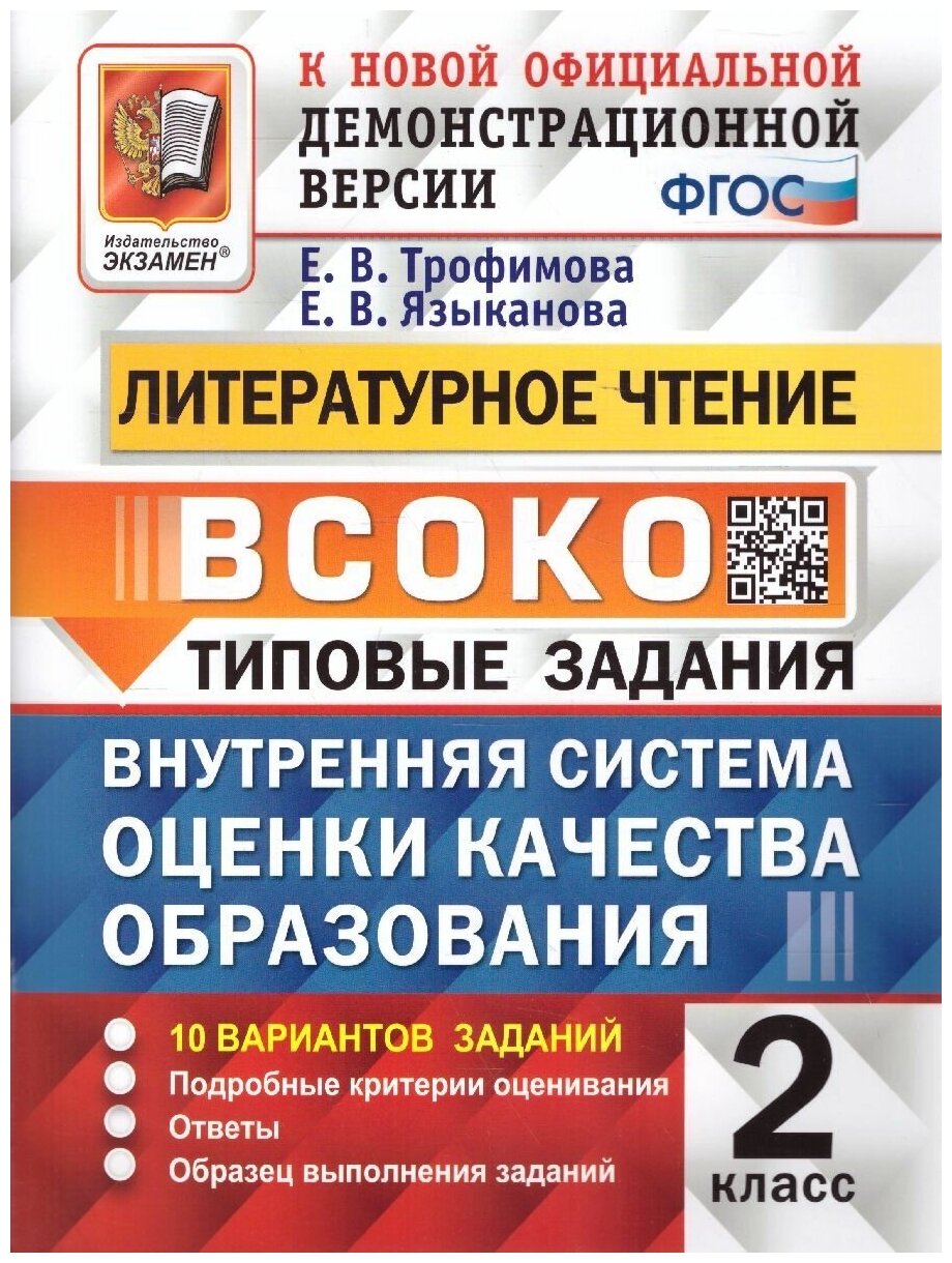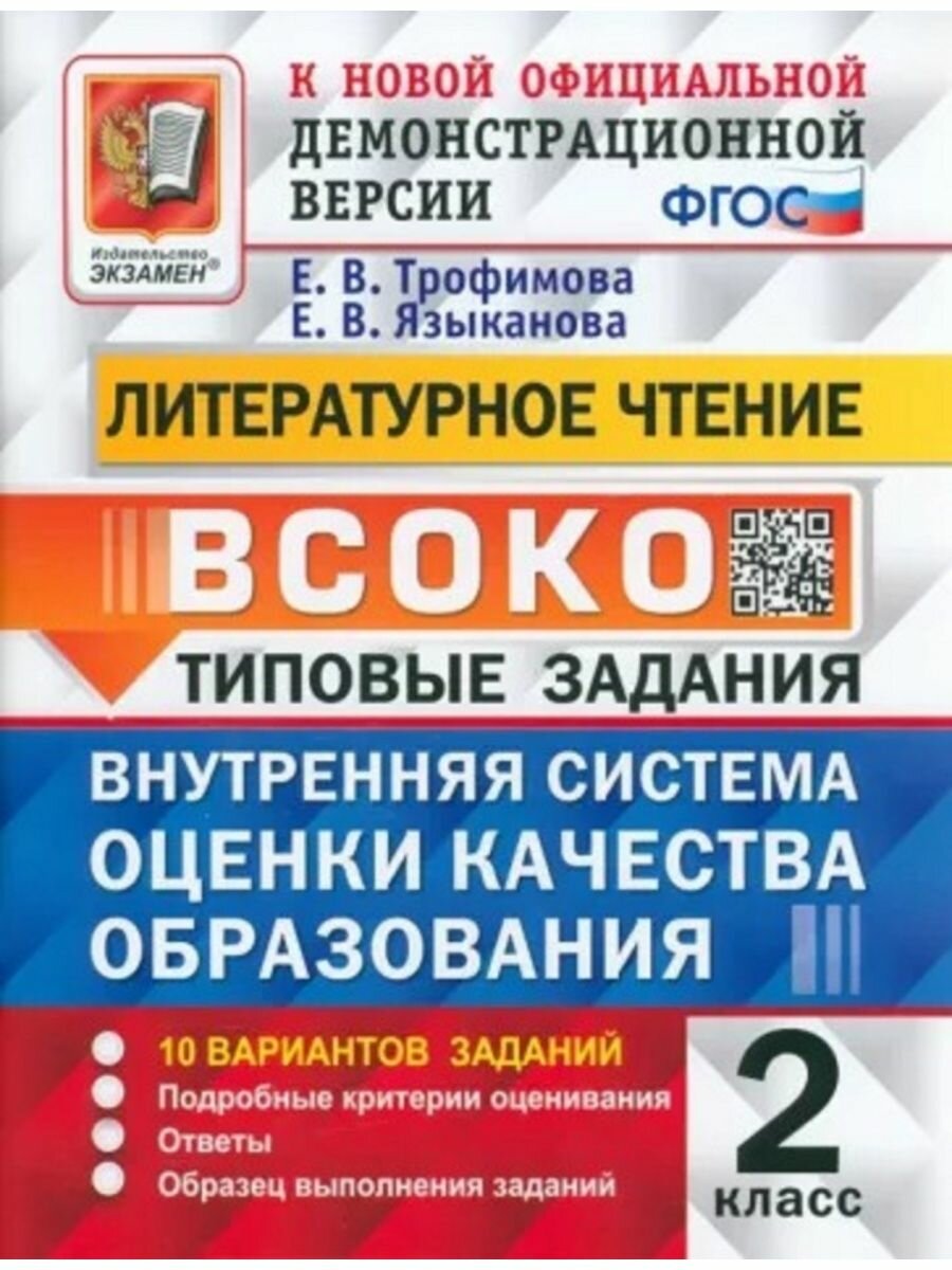 Литературное чтение 2 класс Внутренняя система оценки качества образования Типовые задания 10 вариантов заданий (Трофимова Елена Викторовна; Языканова Елена Вячеславовна); Экзамен Издательство, 2023
