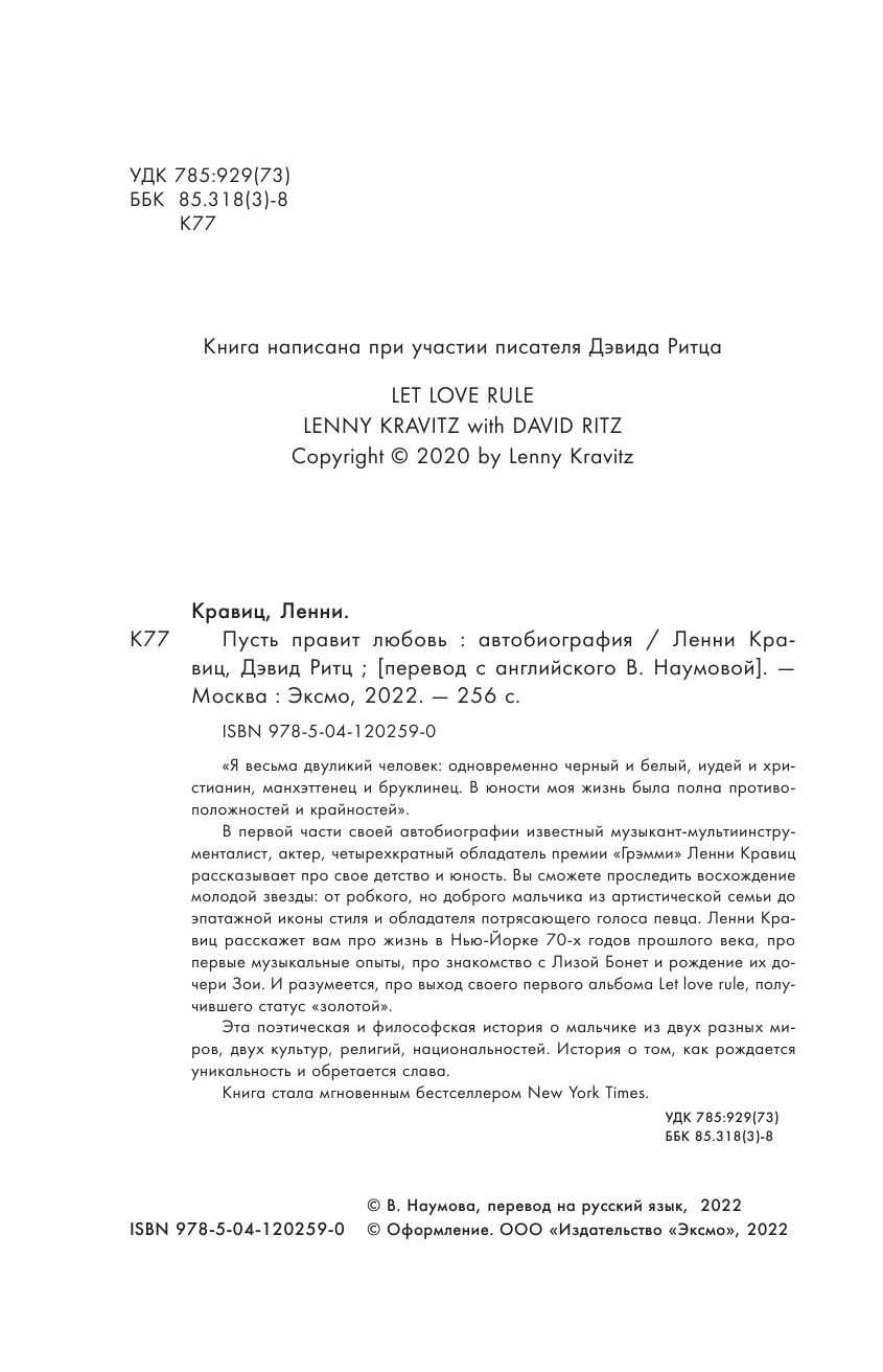 Сервис сравнения цен СкидкаГИД предлагает сравнить цены на товар «Книга: Пусть правит любовь. Автобиография Ленни Кравица (Ленни Кравиц); Эксмо, БОМБОРА, 2022»