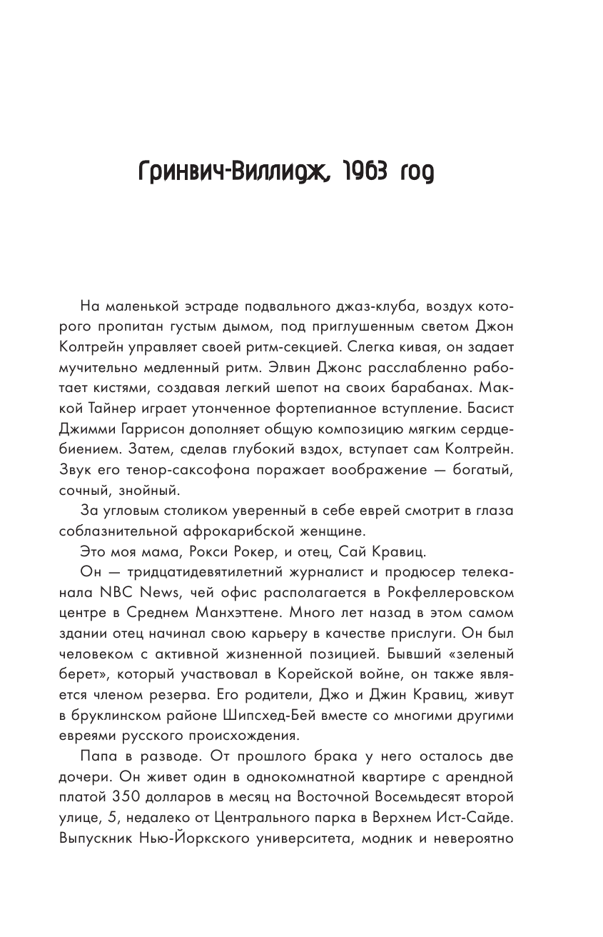 В первой части своей автобиографии известный музыкант-мультиинструменталист, актер, четырехкратный обладатель премии "Грэмми" Ленни Кравиц рассказывает про своё детство и юность. Вы сможете проследить восхождение молодой звезды: от робкого, но доброго мальчика из артистической семьи до эпатажной иконы стиля и обладателя потрясающего голоса певца. Ленни Кравиц расскажет вам про жизнь в Нью-Йорке 70-х годов прошлого века, про первые музыкальные опыты, про знакомство с Лизой Бонет и рождение их дочери Зои. И разумеется, про выход своего первого альбома Let love rule, получившего статус "золотой".