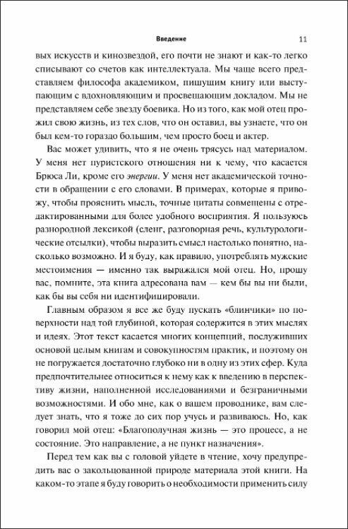 Хорошая книга, но более полно она раскрывается если перед этим прочесть о Пути Дао или даосизме, тогда будет больше понимания о том, что именно хотел сказать Брюс Ли. Полезная книга и для тех, кто занимается спортом и в частности боевыми единоборствами!