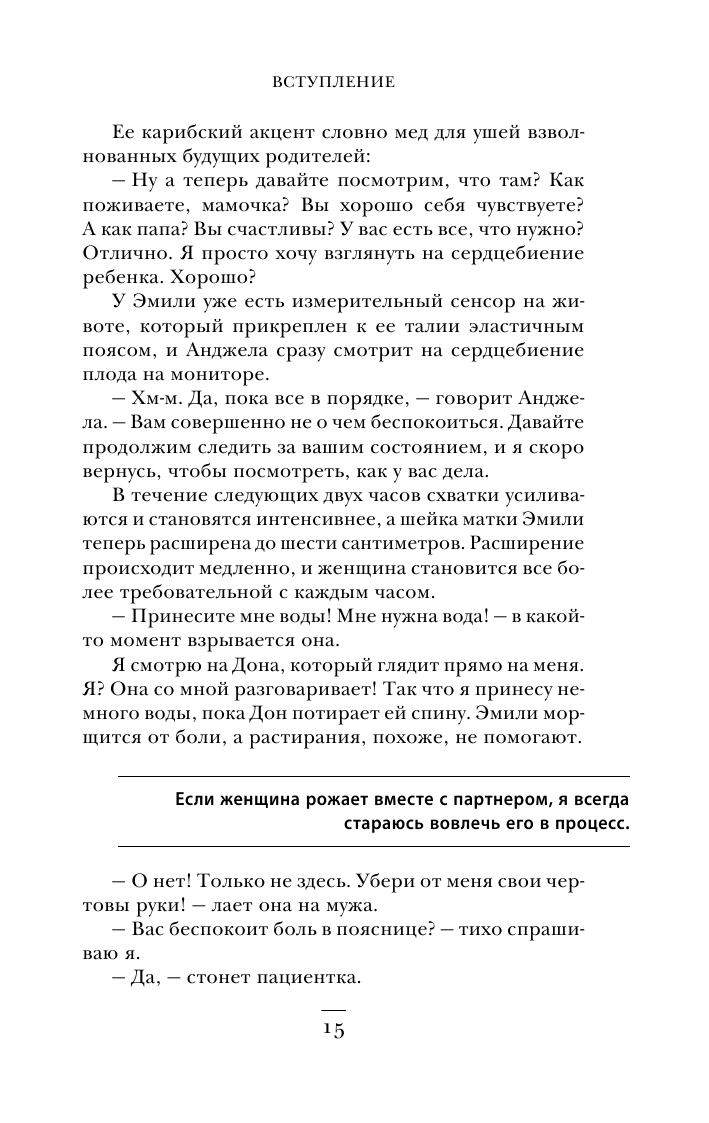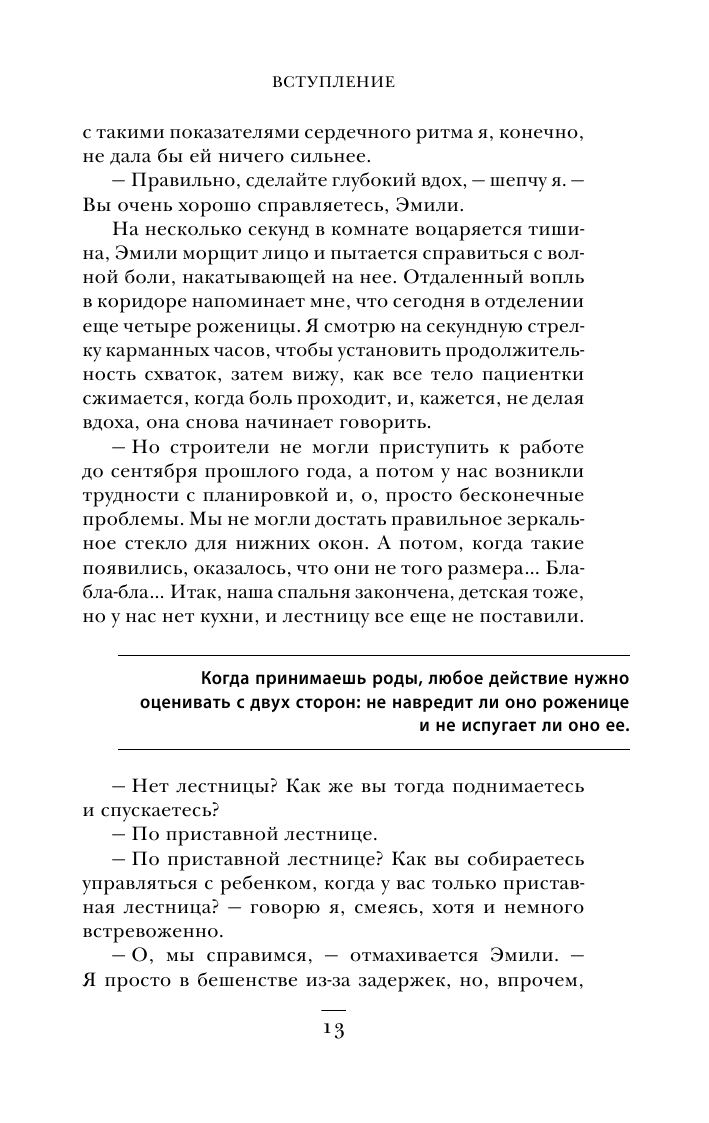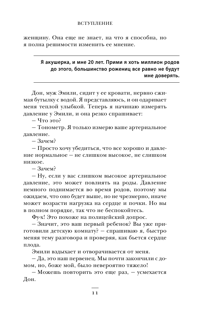 Подробное изложение клинических случаев, особенности работы акушерки, ее индивидуальный подход к каждому пациенту, ярко передающиеся эмоции автора — все это помогает не просто узнать изнутри о том, что происходит за дверьми родильных палат, но и понять, что акушерка для роженицы на время станет другом, которому можно и нужно доверить самое сокровенное — своего ребенка.