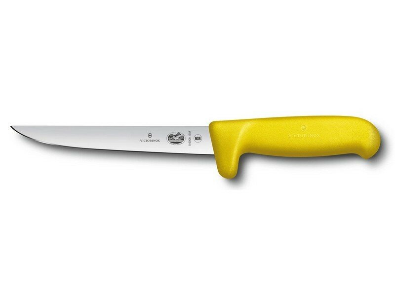Нож кухонный Victorinox Fibrox (5.6008.15M) стальной обвалочный лезв.150мм прямая заточка желтый