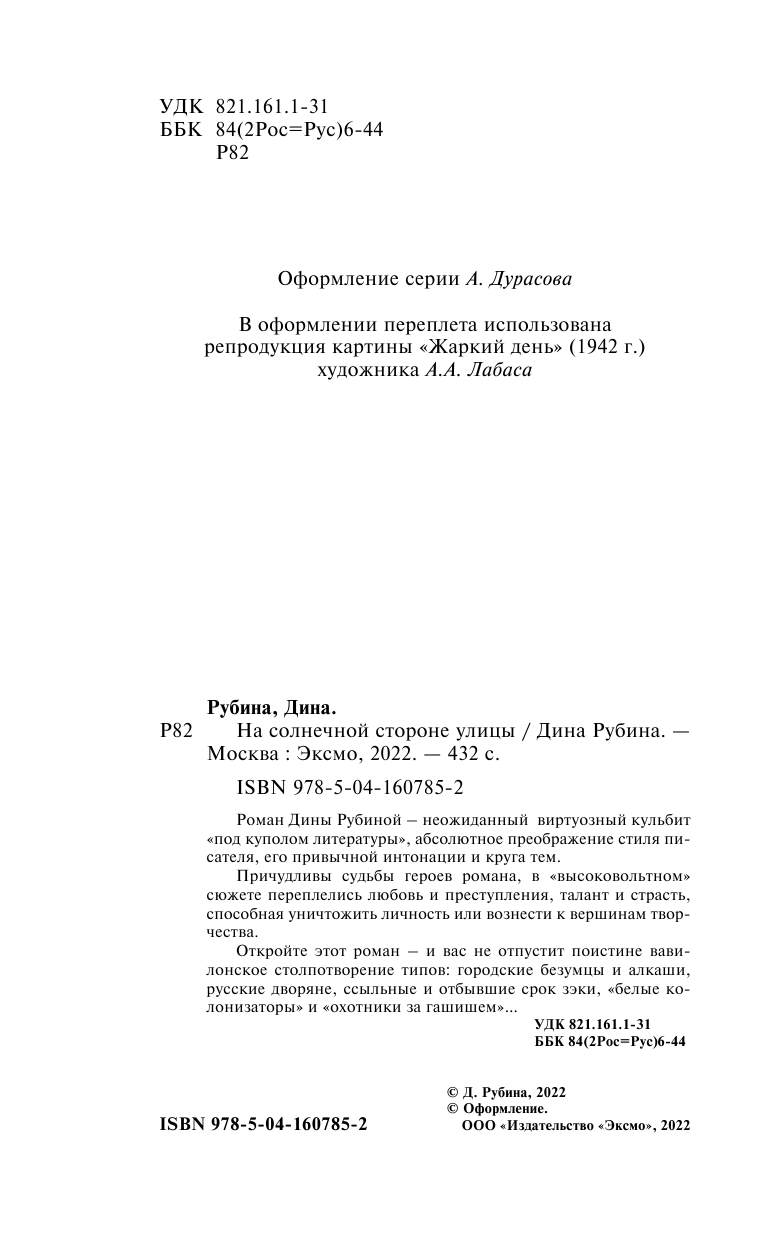 На солнечной стороне улицы (Рубина Дина Ильинична); ООО "Издательство "Эксмо", 2022