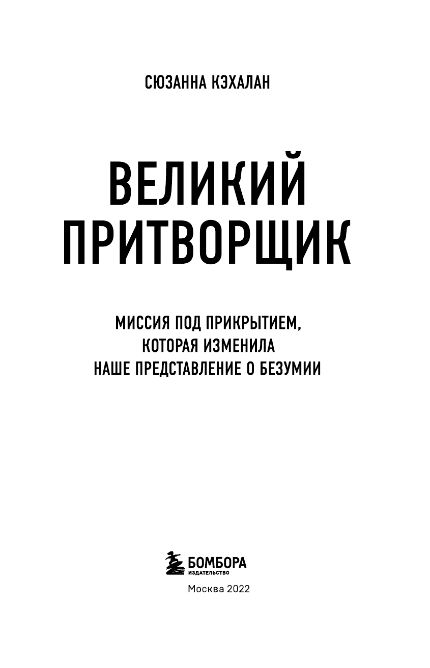Великий притворщик. Миссия под прикрытием которая изменила наше представление о безумии (Сюзанна Кэхалан); Эксмо, БОМБОРА, 2022