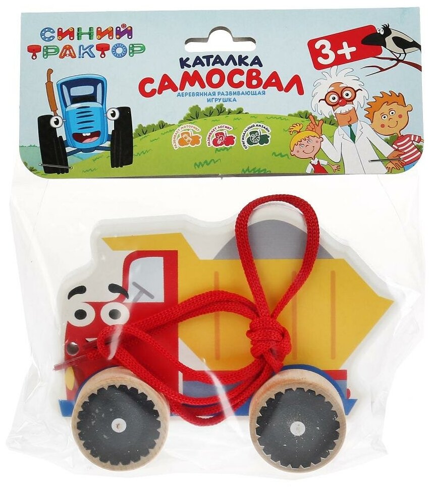 Деревянная развивающая игрушка-каталка Синий трактор. Самосвал ТМ Буратино предназначена для раннего развития детей. Игрушка оснащена подвижными колёсами. Окрашена в приятные контрастные цвета.