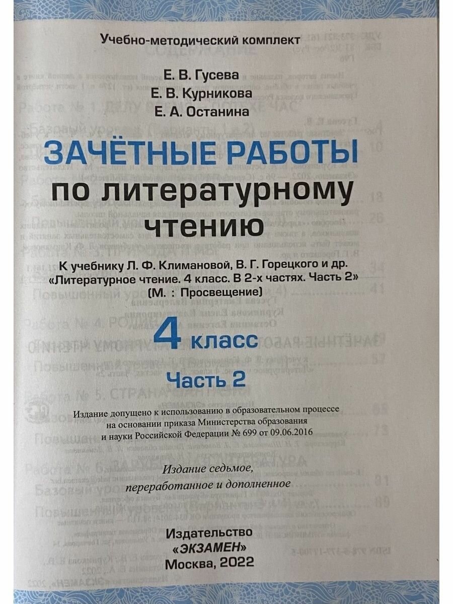 Зачетные работы по литературному чтению 4 класс Часть 2 К уч Л Ф Климановой и др Литературное чтение 4 класс Часть 2 (Курникова Елена Владимировна; Останина Евгения Андреевна; Гусева Екатерина Валерьевна); Экзамен, 2022