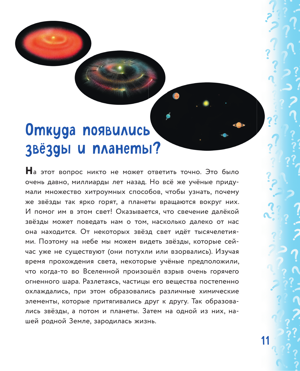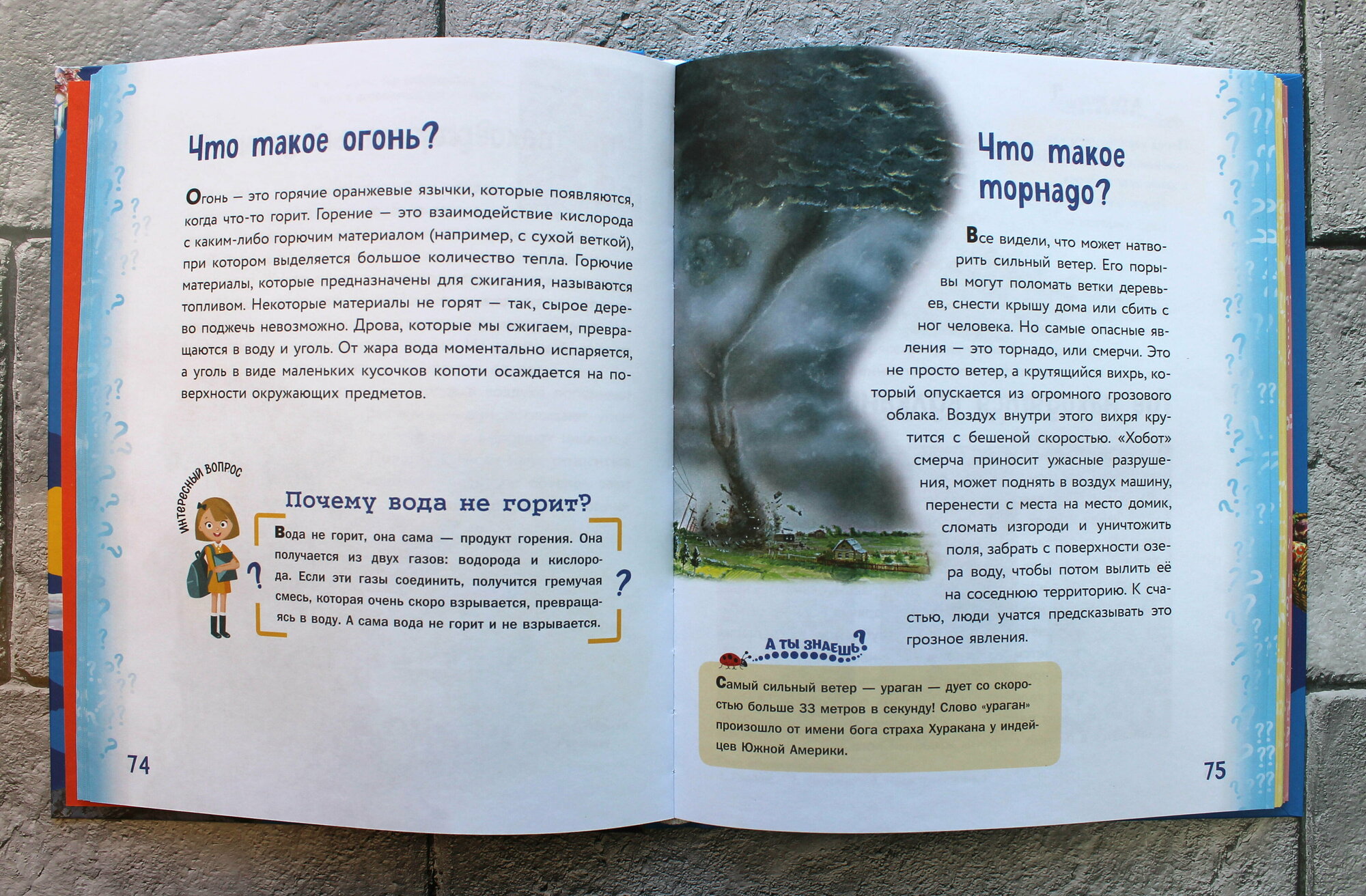 Книга нам очень пришлась по душе, ведь здесь много ответов на вопросы для ребёнка, что касается географии, космоса и окружающей природы. Главное, что всё изложено очень доступным языком, ведь нам не всегда получается понятно объяснить дочери пяти лет какие-то факты. Очень много интересной информации, часть из которой не знала даже я, несмотря на моё высшее педагогическое образование)).