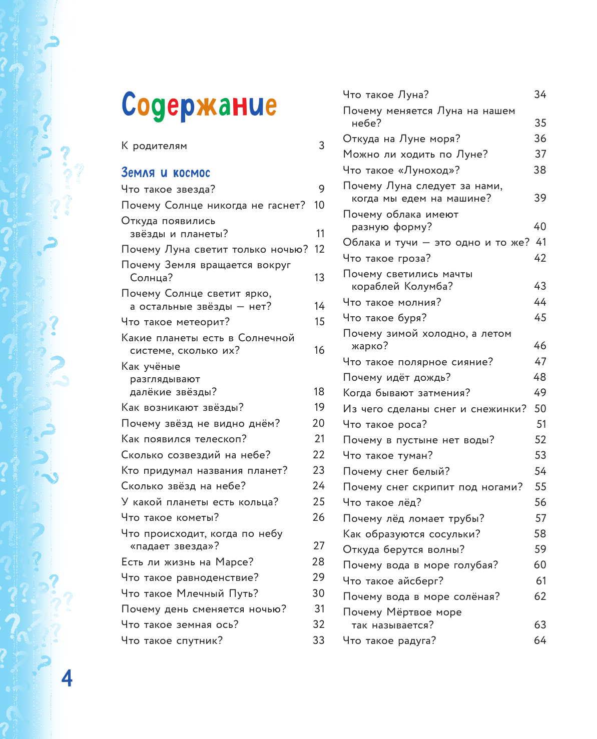Классная книга, я читаю ее ребенку, но могу заметить, что даже для меня, уже будучи взрослой, много интересного написано, о некоторых фактах, даже я не знала, хотя по сути много интересных книжек прочитала, в том числе и научных. Написана грамотно, в книге 4 раздела: земля и космос, география и географические открытия. Все круто раскрыто, все темы разобраны.