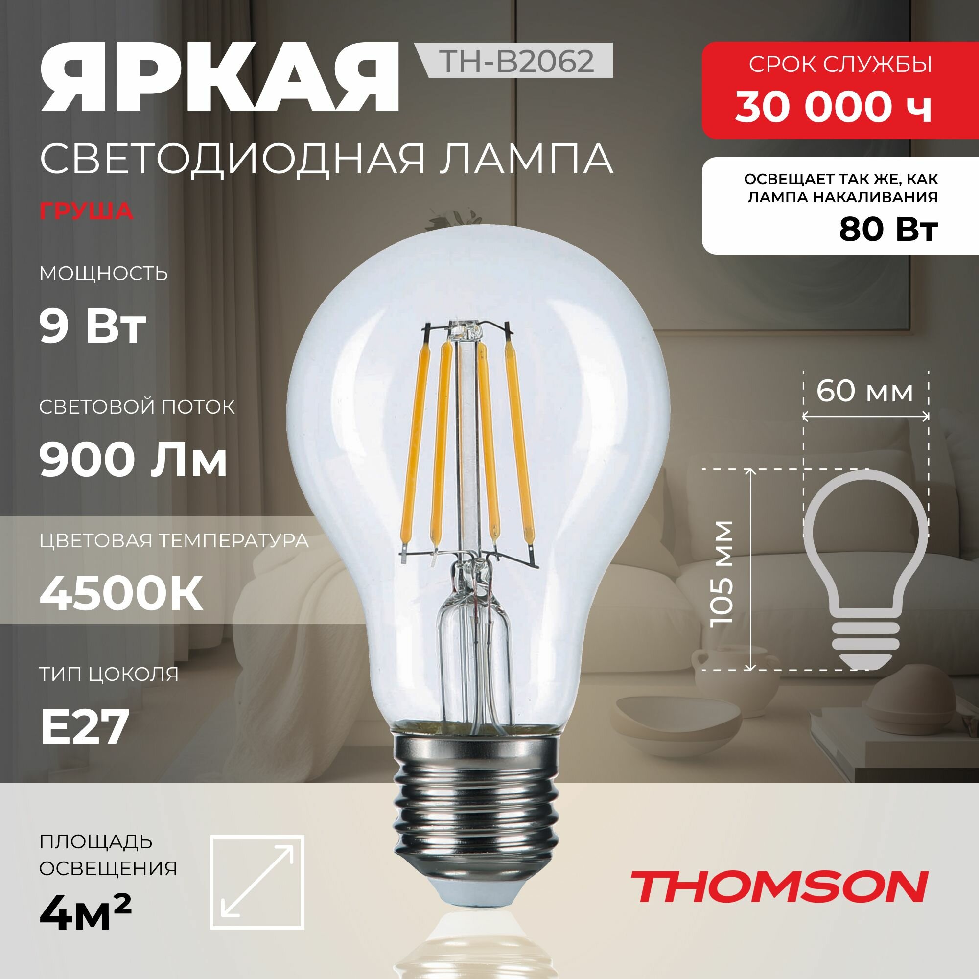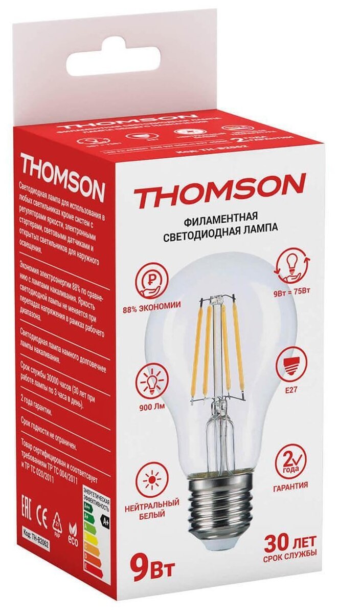 Модель: THOMSON LED FILAMENT A60 9W 900Lm E27 4500K TH-B2062