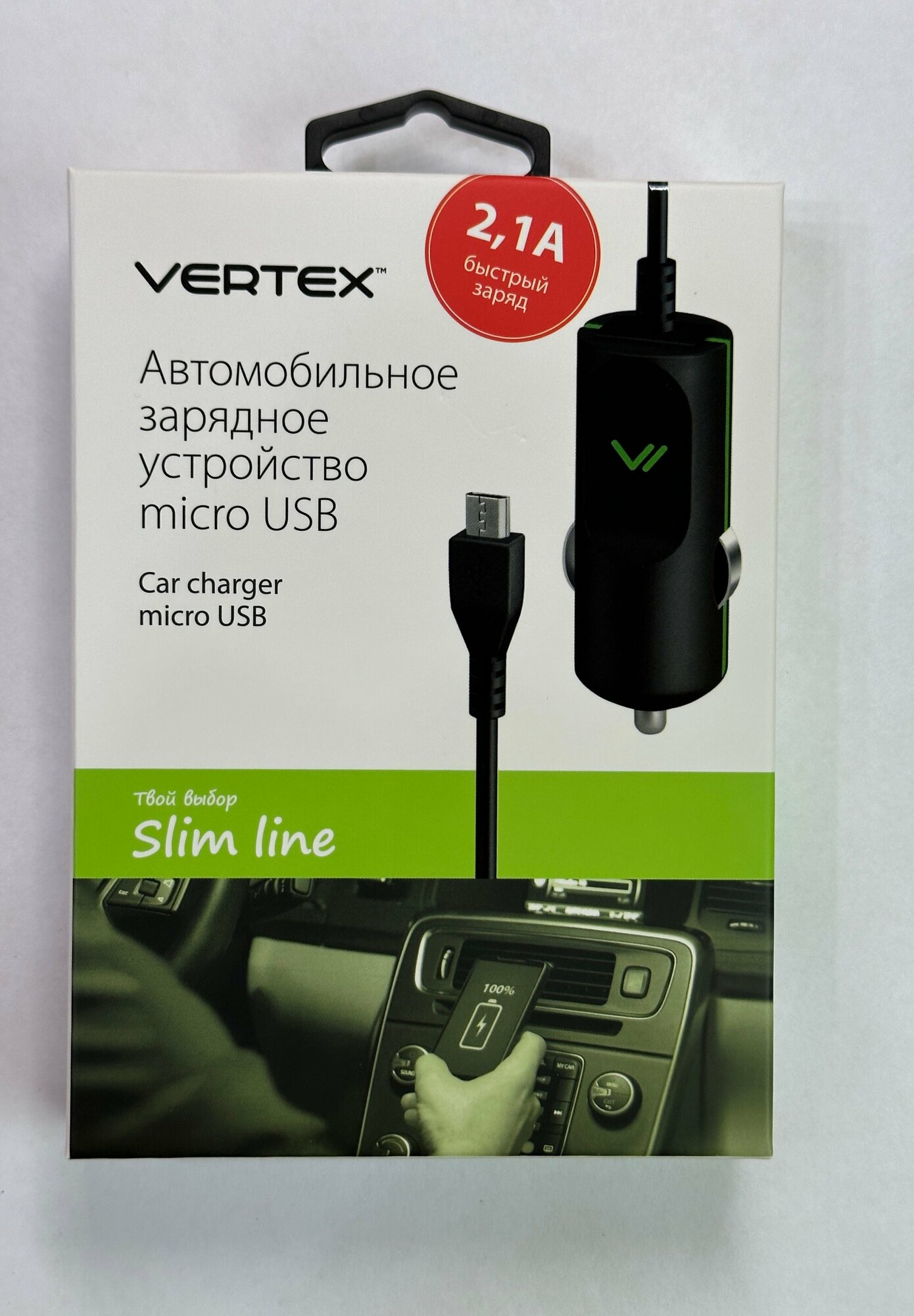Автомобильное зарядное устройство Vertex Slim Line micro USB 2.1 A