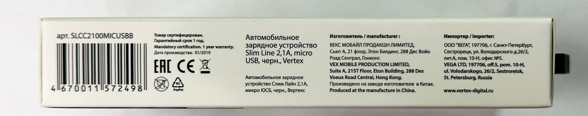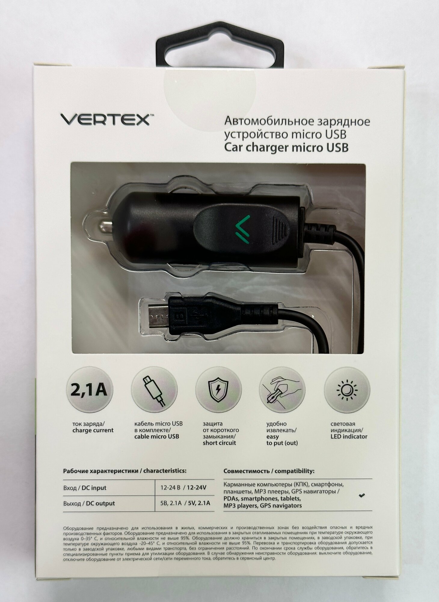 Сервис сравнения цен СкидкаГИД предлагает сравнить цены на товар «Автомобильное зарядное устройство Vertex Slim Line micro USB 2.1 A»