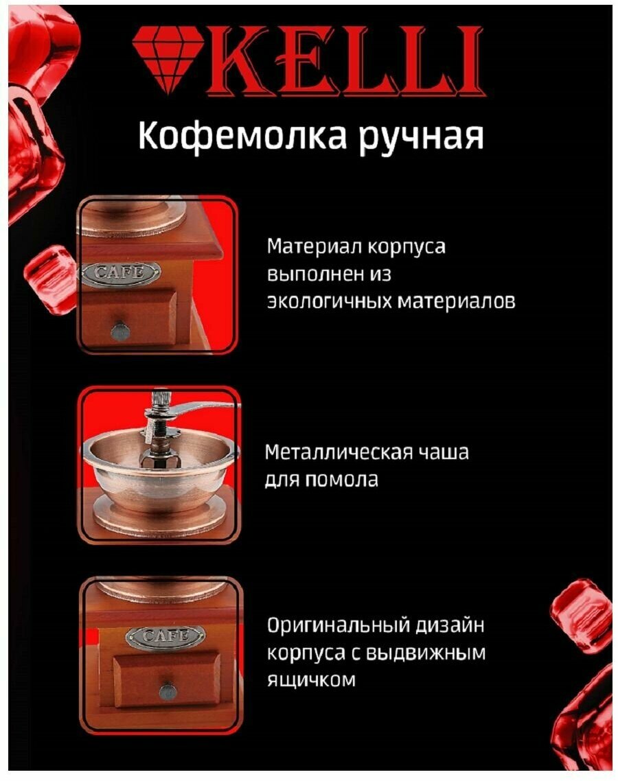| Конструкция | деревянный корпус, металлическая чаша для помола |