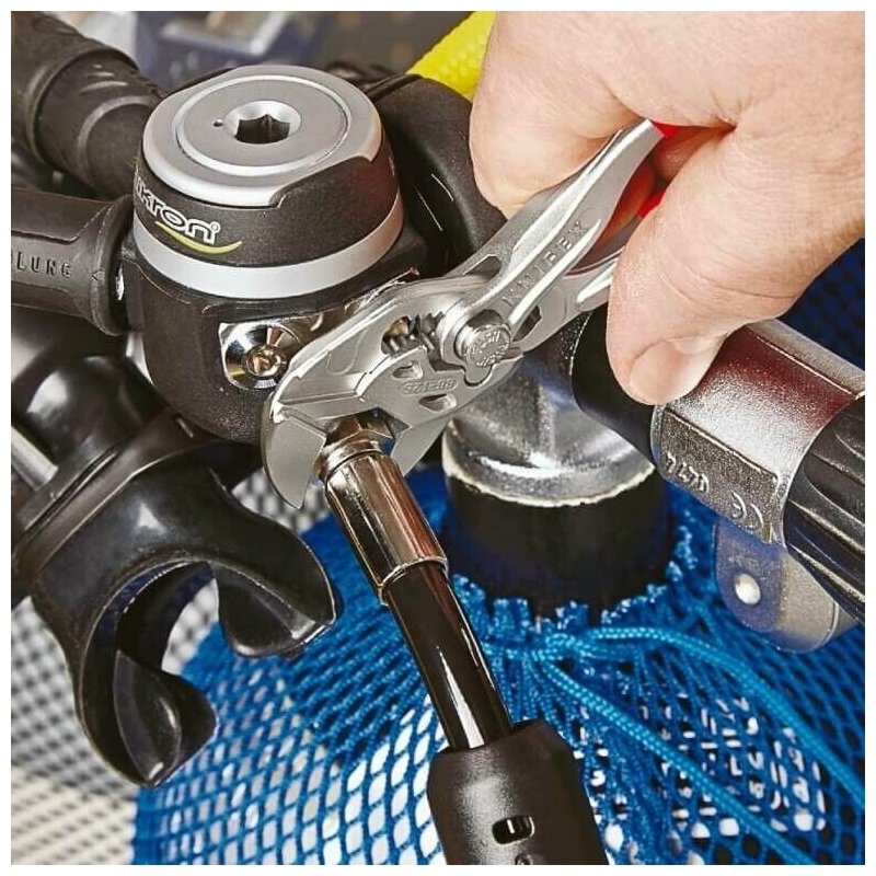 Заменяют полный набор гаечных ключей, как метрических, так и дюймовых. Регулируемый инструмент для работы с винтовыми соединениями, также отлично подходит для захвата, фиксации, опрессовки и гибки деталей. 10-кратное увеличение передачи усилия. Хромованадиевая электросталь, кованая.